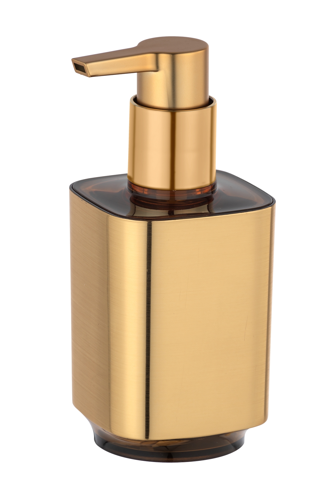 Denne elegante sæbedispenser i guld er genopfyldelig og velegnet til flydende sæbe eller lotion. Dispenseren er fremstillet af robust, BPA-fri plast og passer perfekt til Auron-badeværelsesserien. Den har en kapacitet på 300 ml og måler 7 cm i bredden, 16,5 cm i højden og 8 cm i dybden.