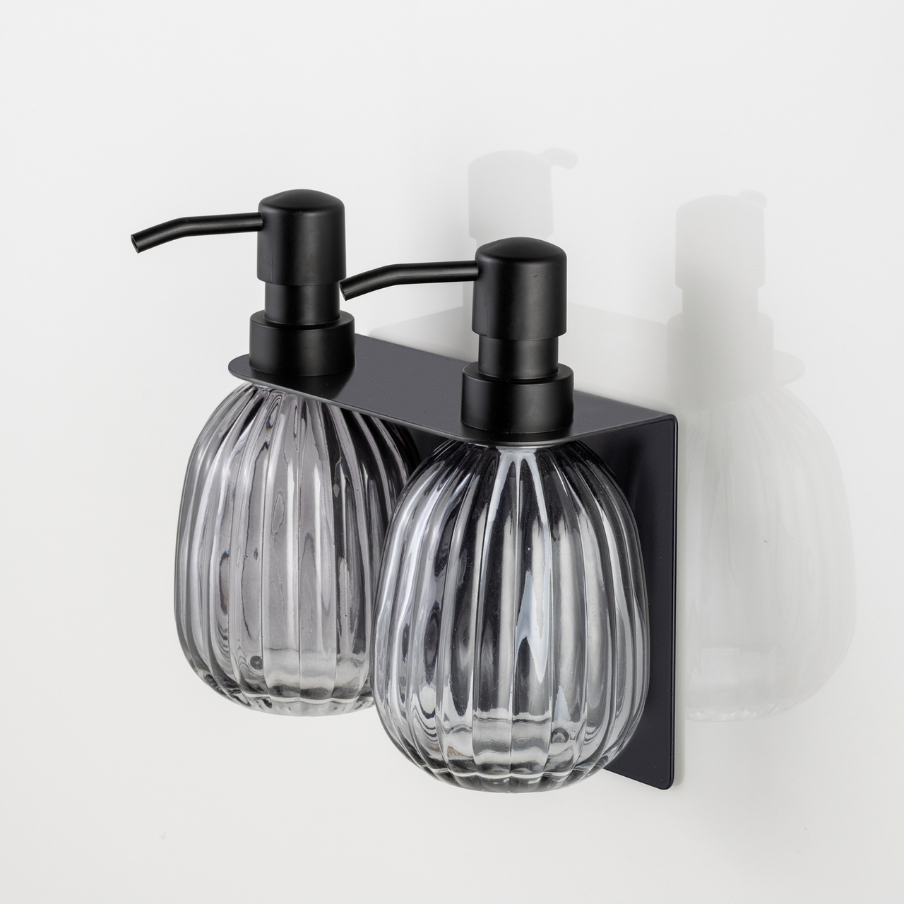 Wenko Turbo-Loc holder til sæbedispensere i en elegant og funktionel udgave, perfekt til montering på væggen. Holderen er designet med plads til to sæbedispensere og har et moderne look i mat sort, der tilføjer et stilrent og eksklusivt præg til badeværelset eller køkkenet. Med Turbo-Loc systemet får du en sikker og nem montering uden brug af værktøj – blot fjern beskyttelsesfilmen og tryk holderen fast på en glat overflade. Den stærke klæbende bagside sikrer holdbarhed og stabilitet, mens designet sparer plads og holder dine overflader organiserede.