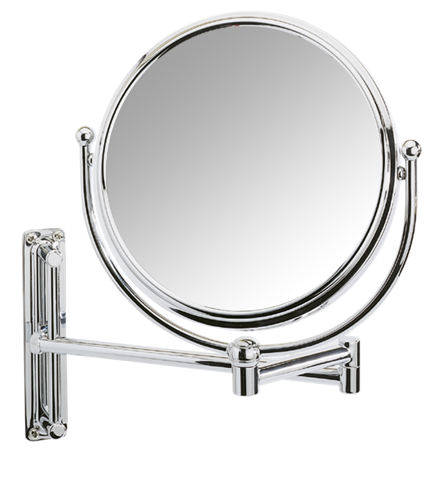 Det kosmetiske vægspejl er en praktisk tilføjelse til badeværelset, da spejlet med sin svingarm tilbyder fleksibel brug. Spejlet er af højglans krom med en diameter på 19 cm. Kosmetikspejlets forside består af et almindeligt spejl, og på bagsiden har spejlet en forstørrelsesfunktion på 500%, hvilket gør spejlet ideelt til dagligdagens kosmetiske rutiner.