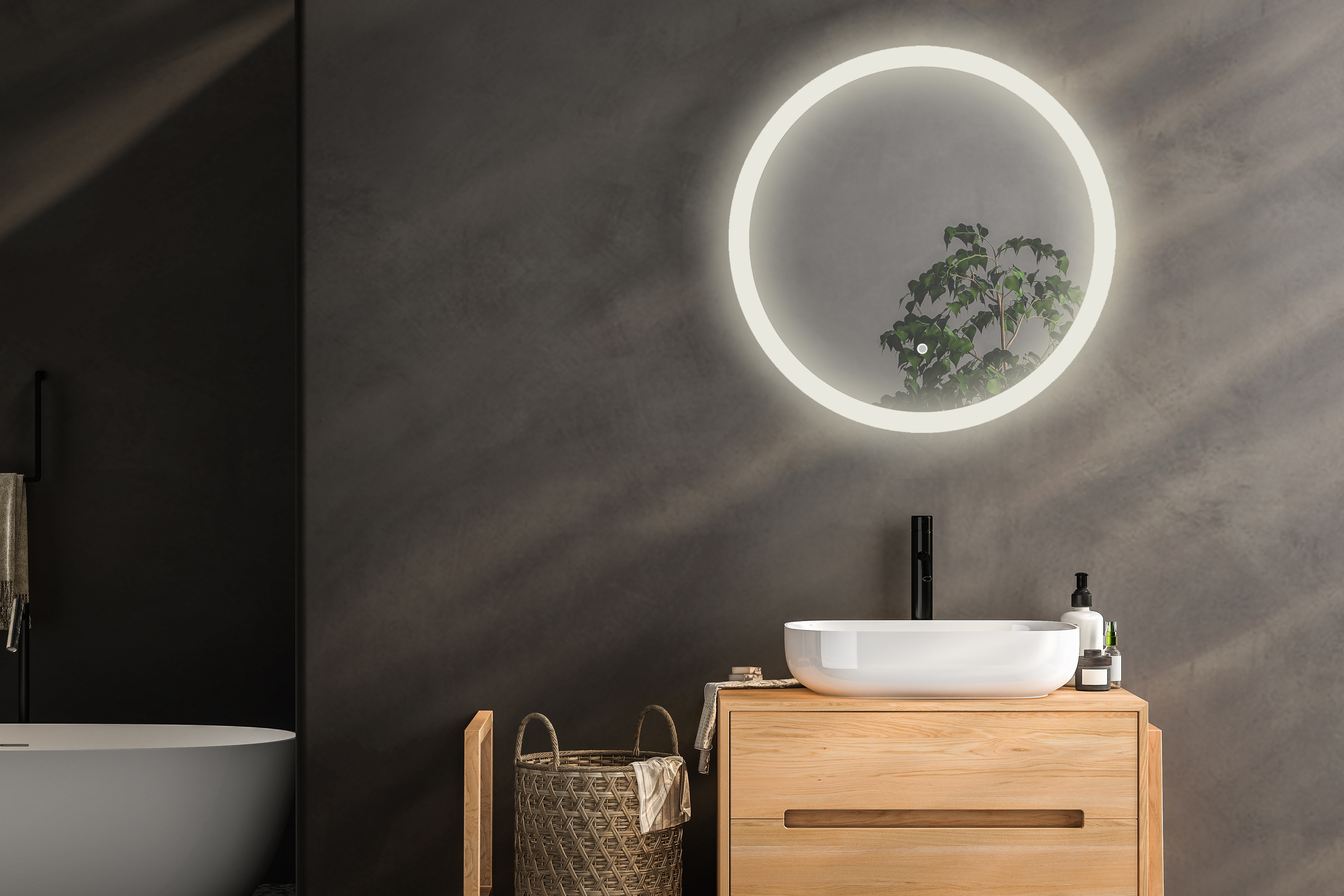 Stilet og moderne LED lysspejl i Ø75 cm.
