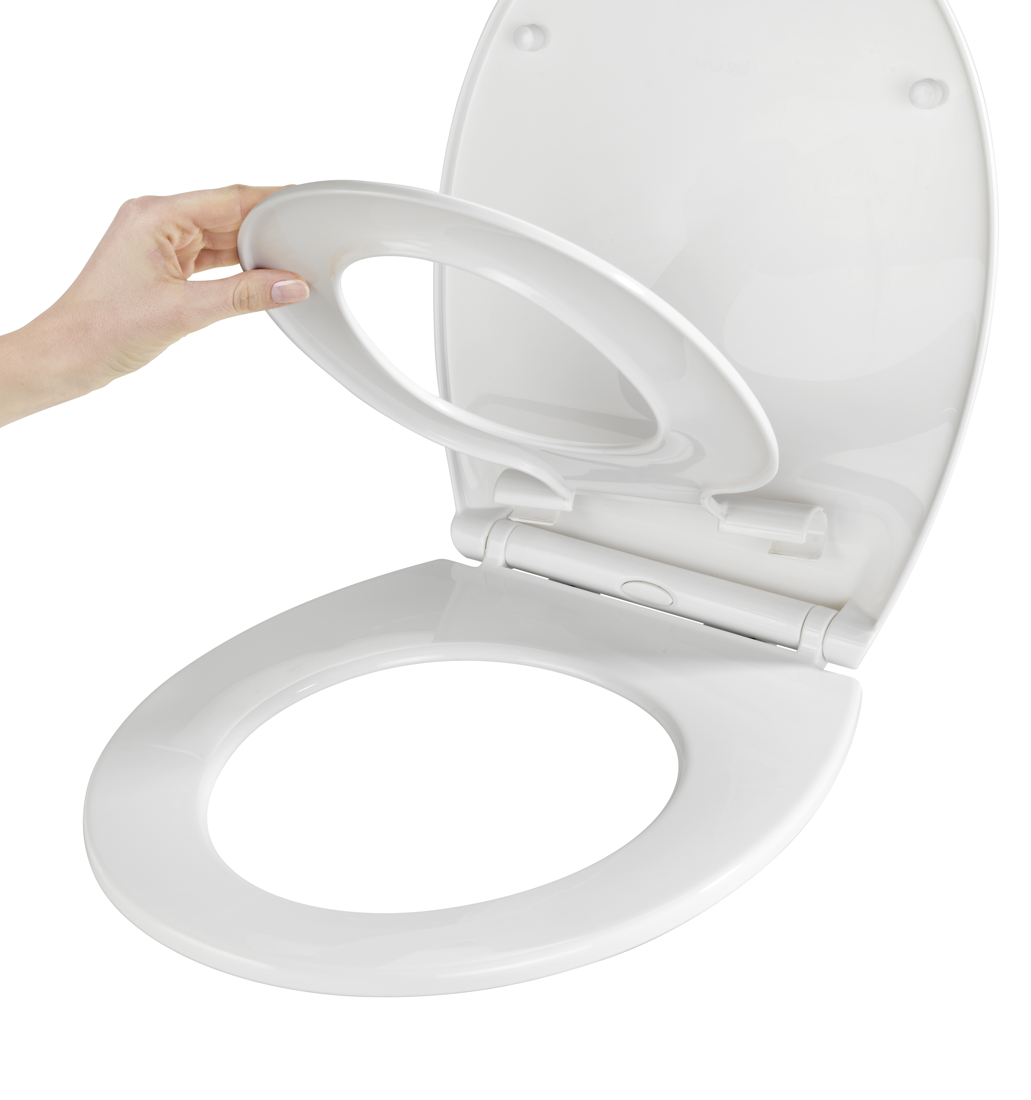 Toiletsædet Syros fra WENKO er en praktisk 2-i-1-løsning, der kombinerer voksensæde og børnesæde i ét produkt. Det integrerede sæde til børn kan nemt klappes op og ned efter behov, hvilket gør det lettere for hele familien at bruge toilettet uden at skulle skifte sæde.