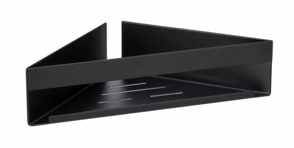 Stilfuld hjørneshelf lavet af mat sortlakeret rustfrit stål. Den er ideel til badeværelset, bruseren eller gæstetoilettet og til opbevaring af plejeprodukter og badeværelsesudstyr. Monteringen kræver ingen boring takket være Turbo-Loc® vægmontering. Målene er 36 cm i bredden, 8 cm i højden og 17 cm i dybden.