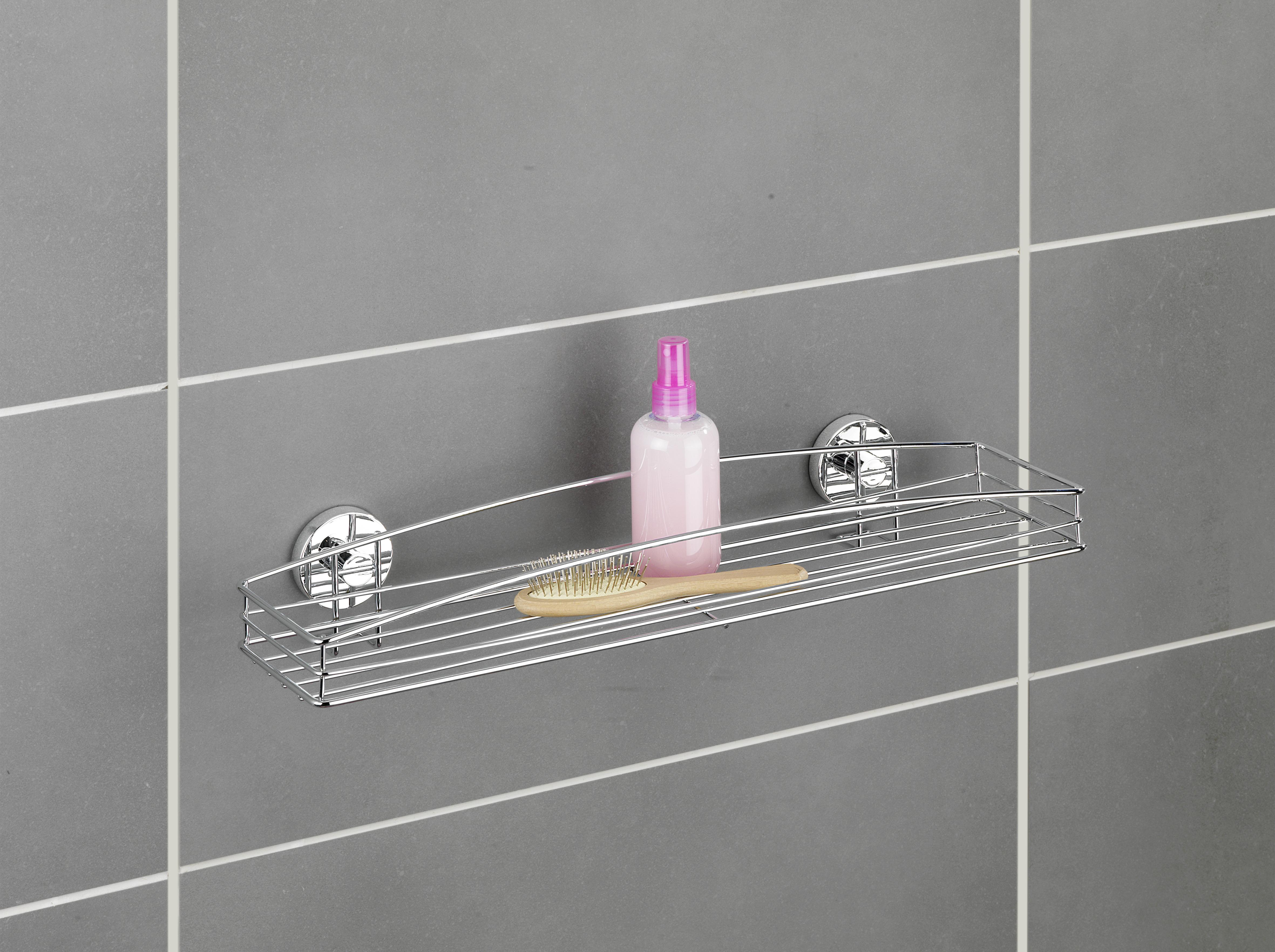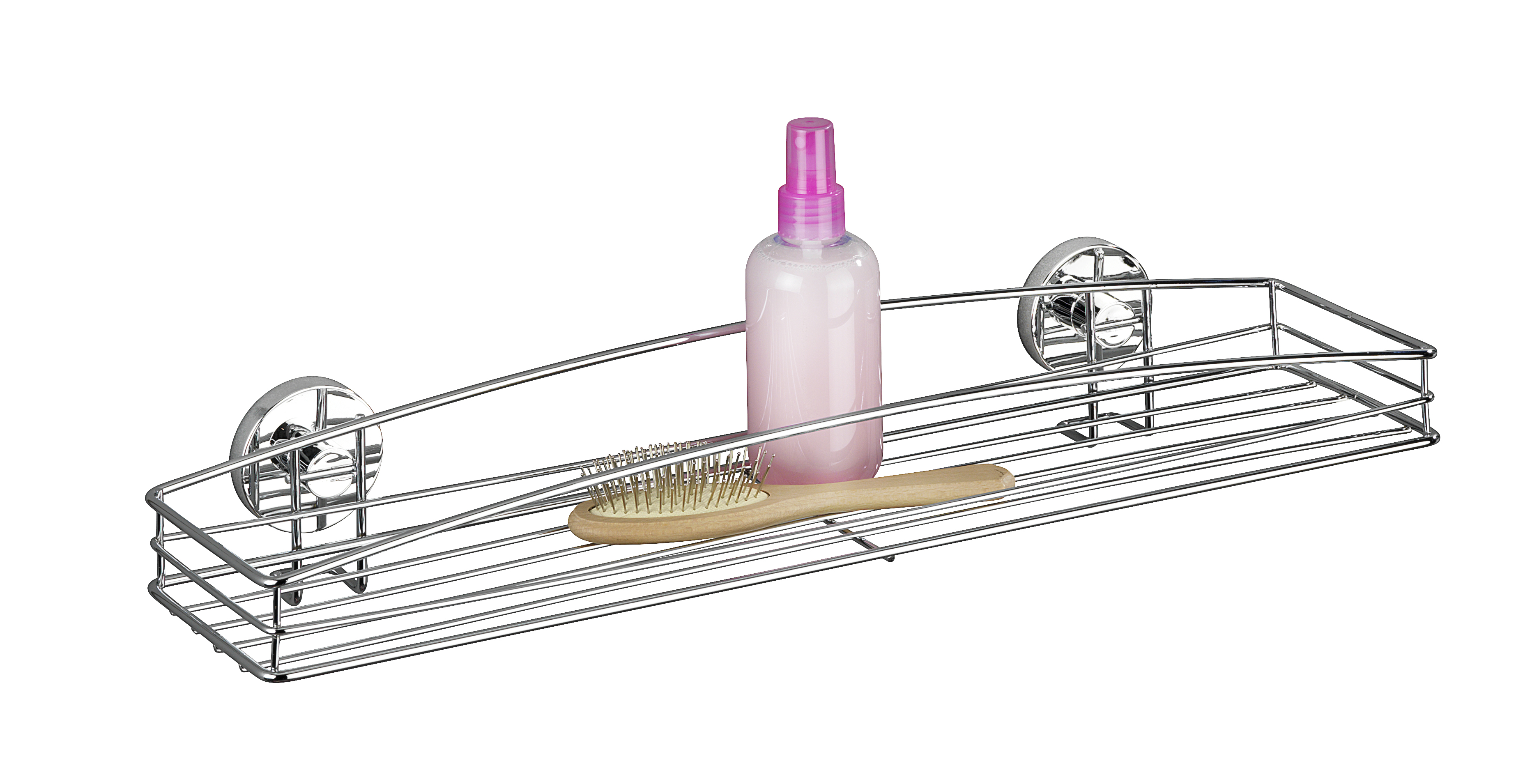 Unikt sugesystem til hurtig, nem og sikker montering. Fæstner på alle lufttætte overflader, selv på let ujævne flader. Ekstremt stærkt greb uden boring, hvor der skabes vakuum i Loc'en ved at udtrække luften med den medfølgende pumpe. Vacuum-Loc®'erne kan omplaceres efter behov og fjernes uden at efterlade rester. Mål: 52,5 cm i bredden, 8,5 cm i højden og 16 cm i dybden; indvendige kurvemål: 51,5 cm i bredden, 5,3 cm i højden og 11,4 cm i dybden.