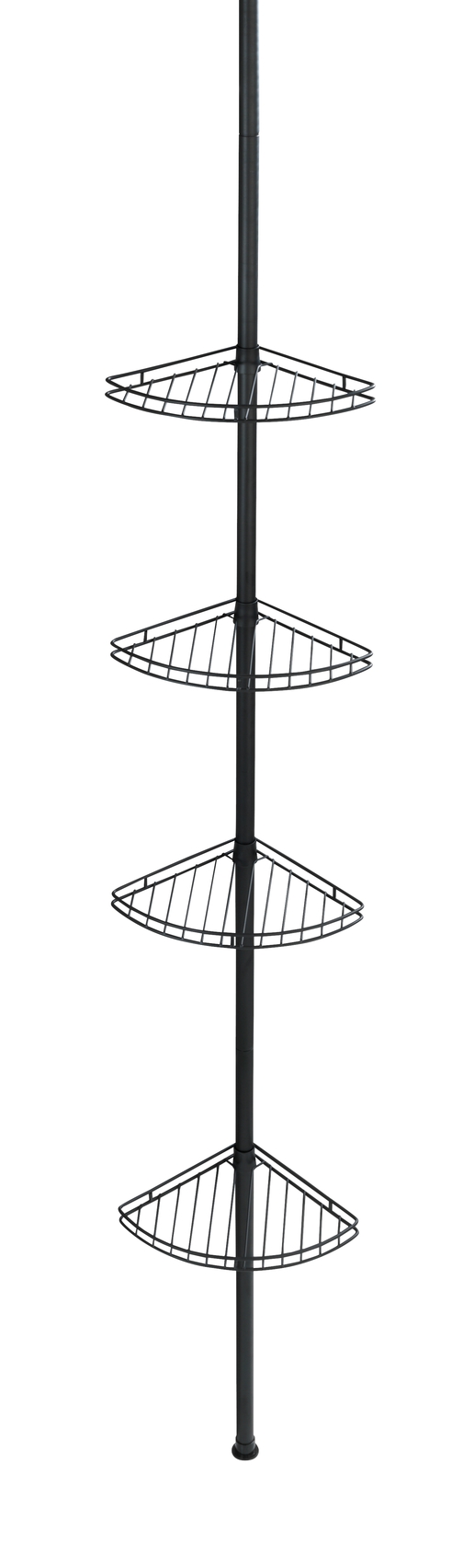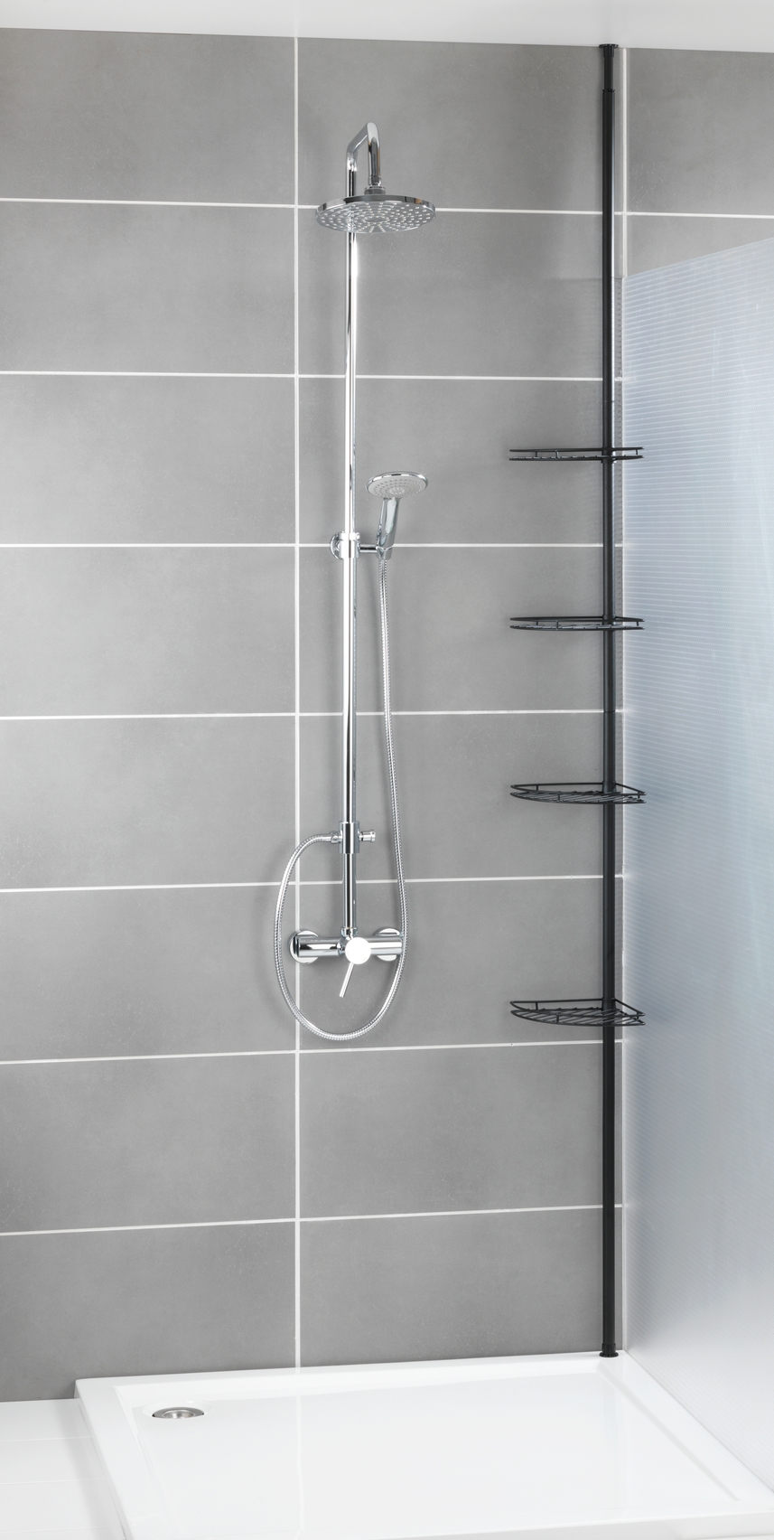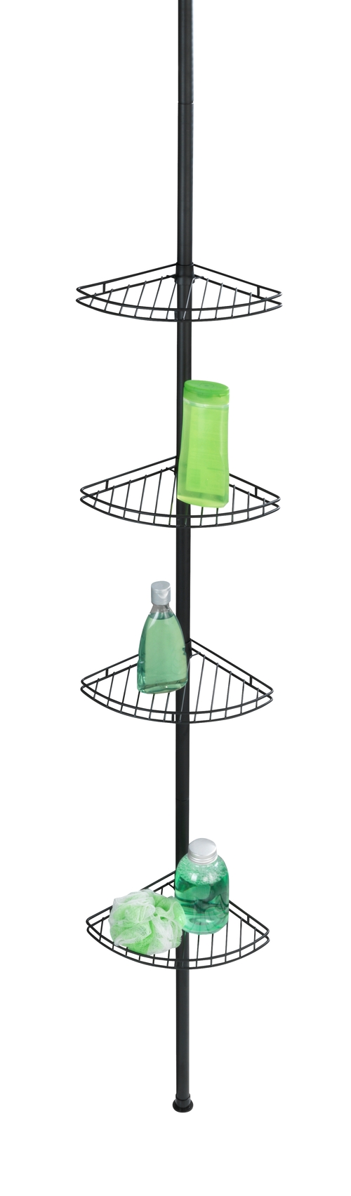 Prea teleskopstangen fra WENKO er en fleksibel og pladsbesparende løsning til opbevaring på badeværelset. Den består af 4 trådkurve og en justerbar teleskopstang, der kan udvides op til 275 cm i højden. Perfekt til montering i brusekabiner, hjørner ved badekar eller andre steder i badeværelset. De rummelige kurve giver god plads til shampoo, sæbe og øvrigt brusetilbehør, så alt er organiseret og lige ved hånden.