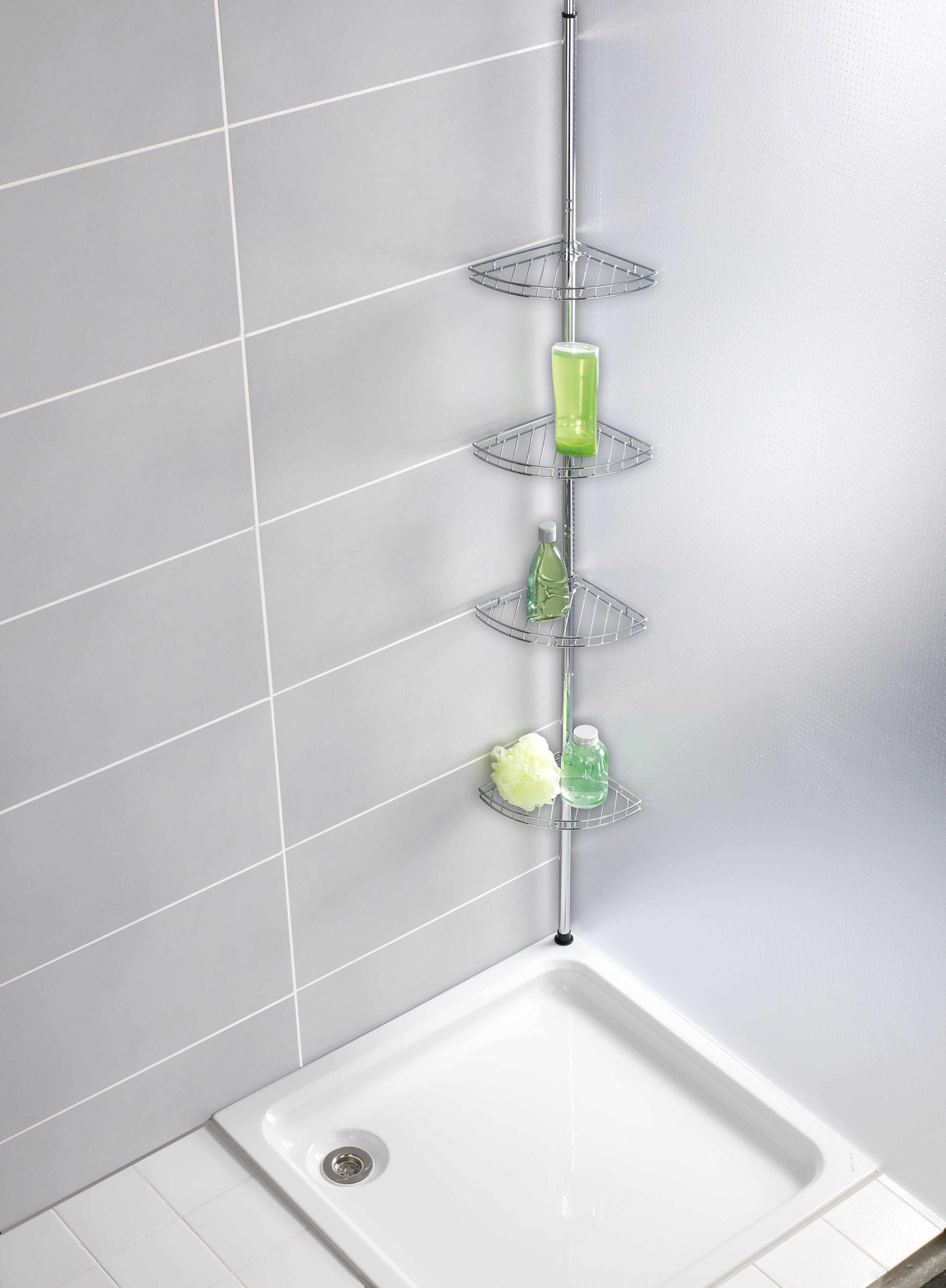 Prea hjørnehylde er en pladsbesparende opbevaringsløsning på badeværelset. Hylden placeres i et af badeværelsets hjørner og er særligt velegnet i brusekabinen, hvor shampoo og andet badetilbehør placeres på hylderne. De fire trådhylder kan placeres og justeres individuelt, så de passer til den enkeltes behov i hverdagen. Både hylderne og teleskopstangen er af rustfrit stål, der gør hylden praktisk på badeværelset.