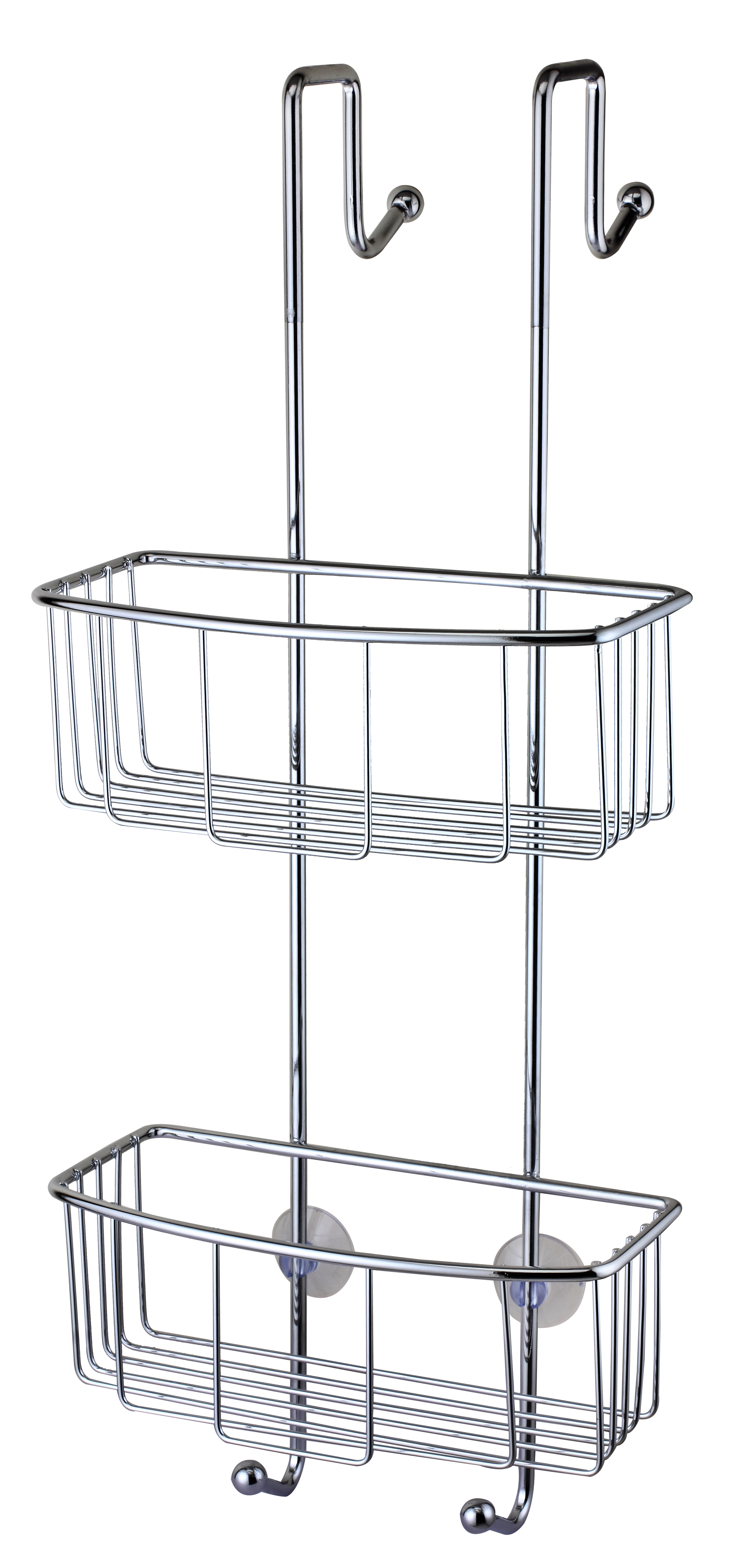 Denne enkle brusehylde placeres henover brusevæggen eller på brusedøren, hvor den let monteres med sine to kroge. Brusehylden er i forkromet stål, og den er udstyret med to bredde hylder til opbevaring af badeværelsesprodukter. På den nederste hylde er der to kroge, hvorpå handsker og klude kan opbevares. Der medfølger sugekopper til at sætte på væggen.