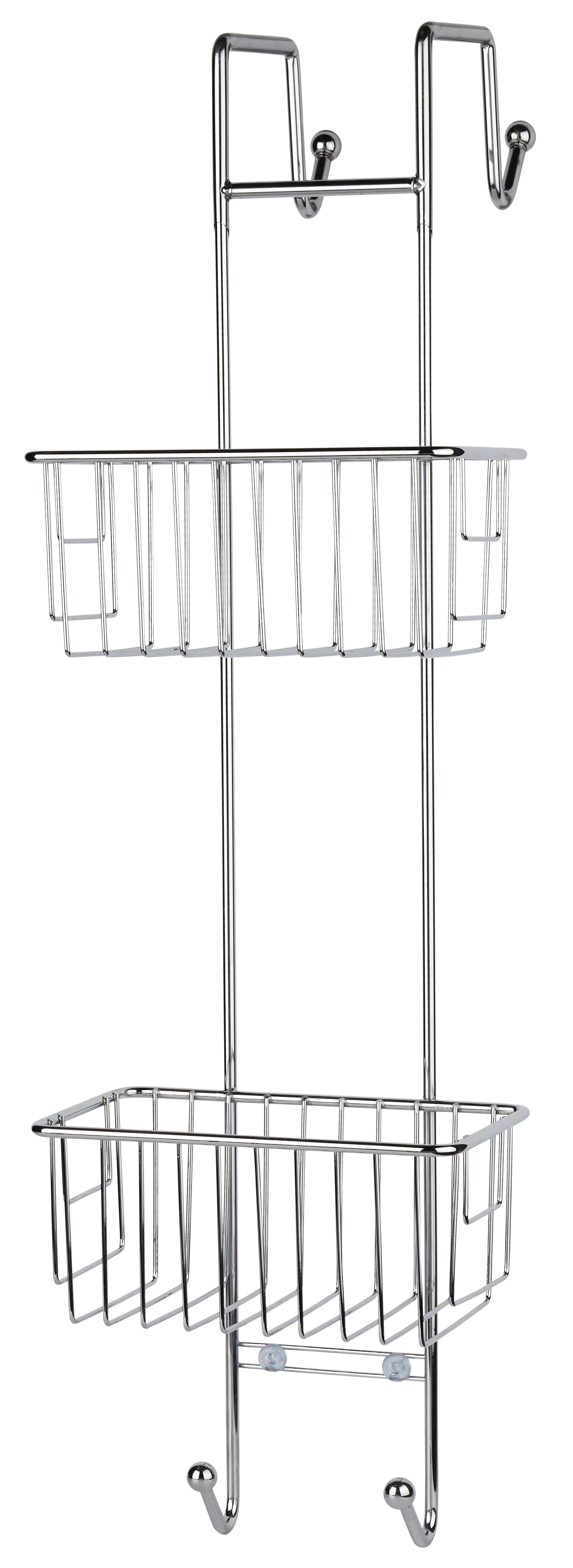 Denne stilede brusehylde er beregnet til glasbyggesten, hvor den let monteres med sine to kroge. Brusehylden er i forkromet stål, og den er udstyret med to store hylder til opbevaring af badeværelsesprodukter. På den nederste hylde er der to kroge, hvorpå handsker og klude kan opbevares. Der medfølger sugekopper til at sætte på væggen.