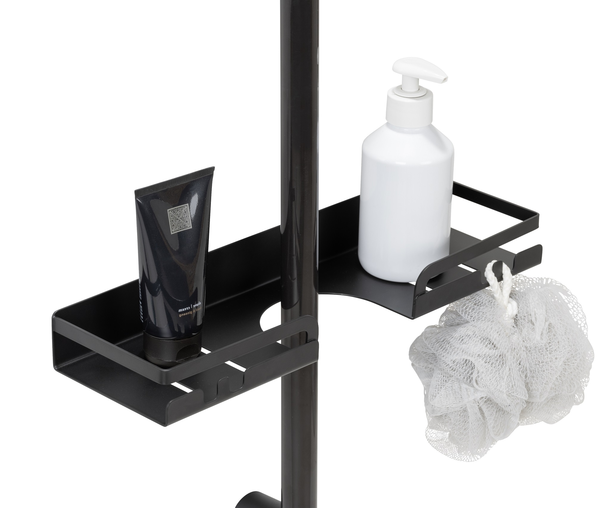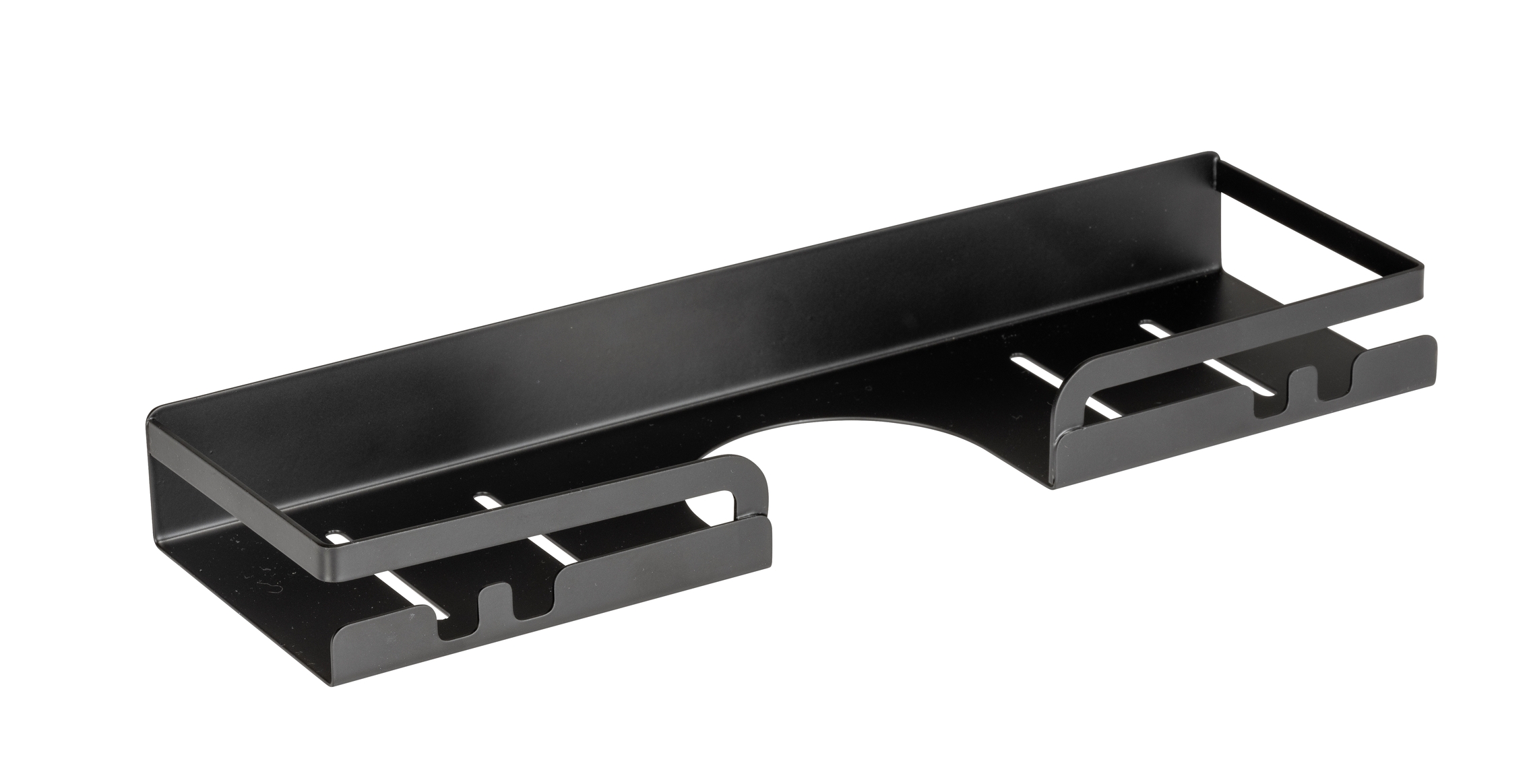 Væghylde i rustfrit stål med sort, mat finish. Til montering bag bruserstangen med Turbo-Loc® klæbepudesystem. Hurtig og nem installation uden brug af værktøj og uden boring. Afstanden mellem væg og bruserstang skal være 4 cm. Mål: 35,5 cm i bredden, 4 cm i højden og 10,5 cm i dybden.