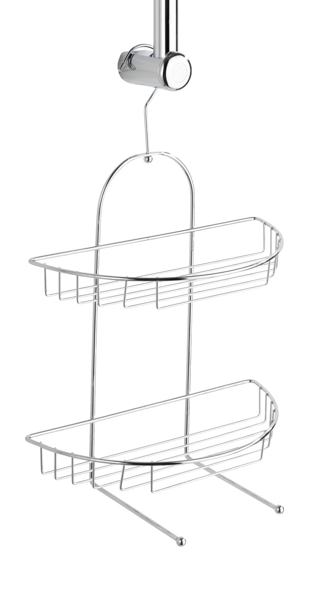 Denne rummelige brusekurv er en funktionel løsning til opbevaring af alt det nødvendige i brusekabinen. Med to separate kurve får du god plads til shampoo, balsam og sæbe, mens de to ekstra kroge giver mulighed for at hænge f.eks. svampe eller skrabere.