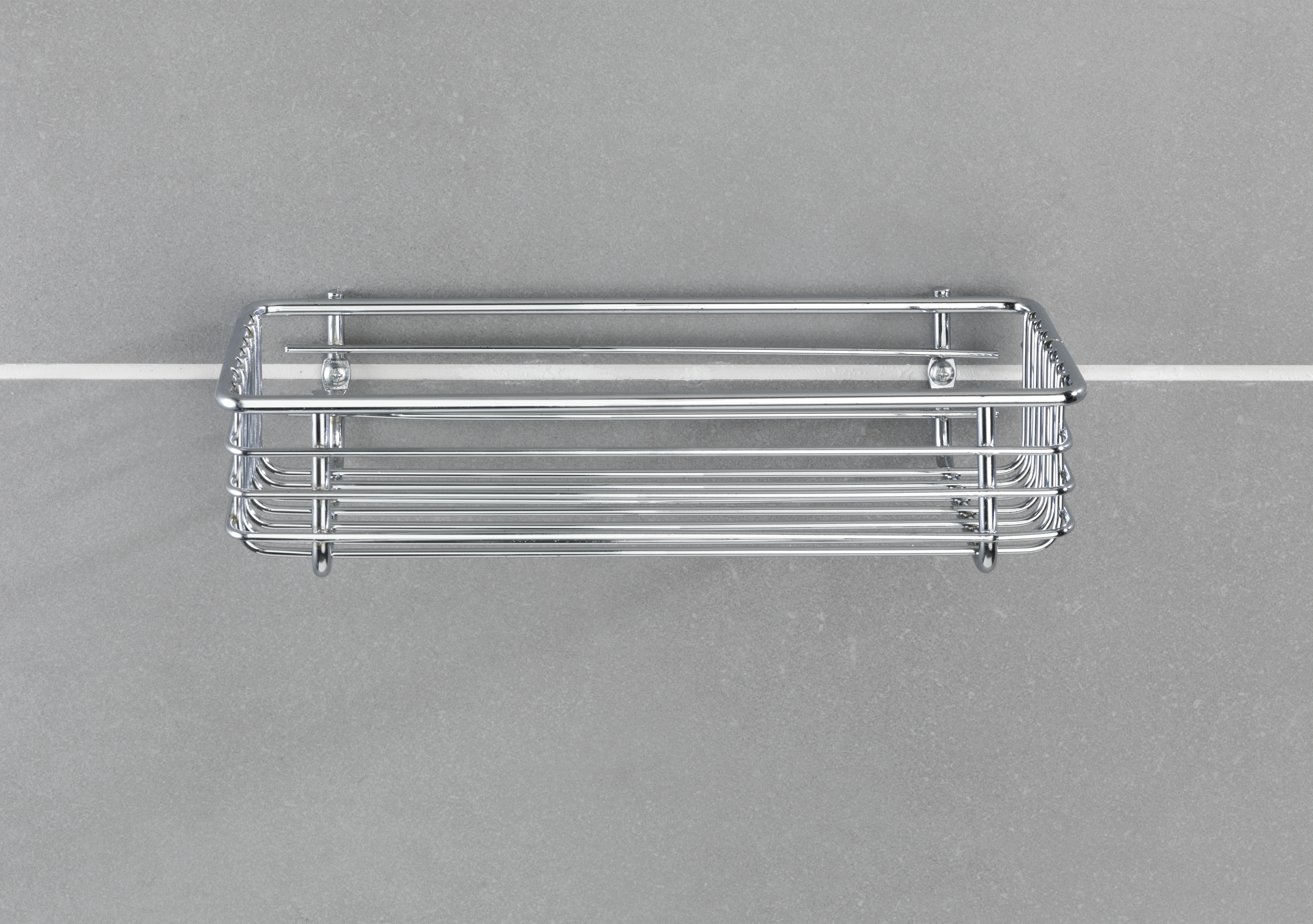 Denne enkelte brusehylde er udstyret med én kurv til opbevaring af badeværelsesprodukter i brusebadet, så shampoo og andre produkter altid er indenfor rækkevidde, når der tages bad. Den rektangulære hylde er både bred og rummelig. Hylden leveres i forkromet stål, og den monteres med medfølgende skruer og dyvler.