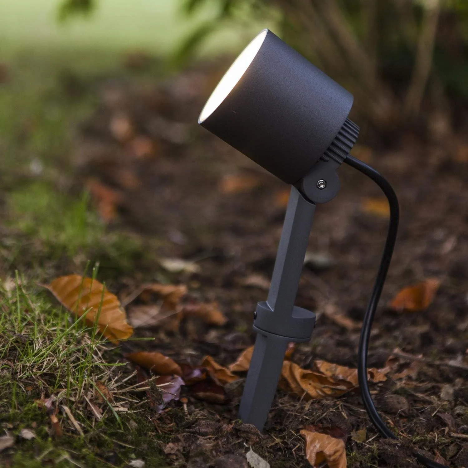 Elegant og kompakt spotlight, der kan orienteres horisontalt og vertikalt, med en varm hvid LED-lysbjælke. Den separate spot-kappe kan bruges til at rette lysstrålen og undgå blænding. Fås i både vægversion og spydversion med ledning og stik.