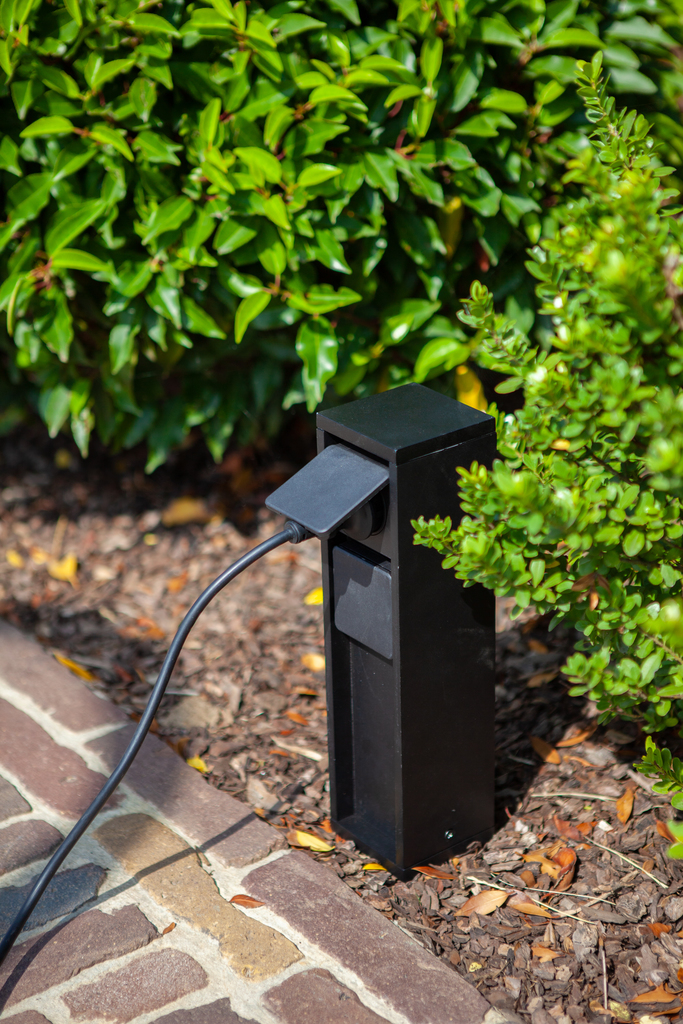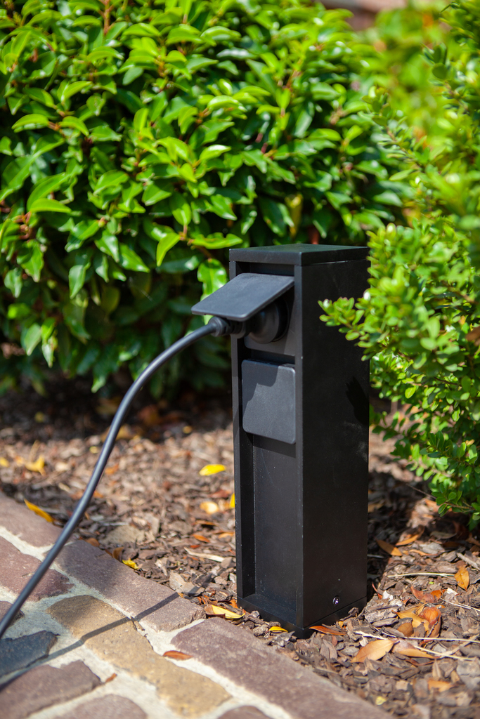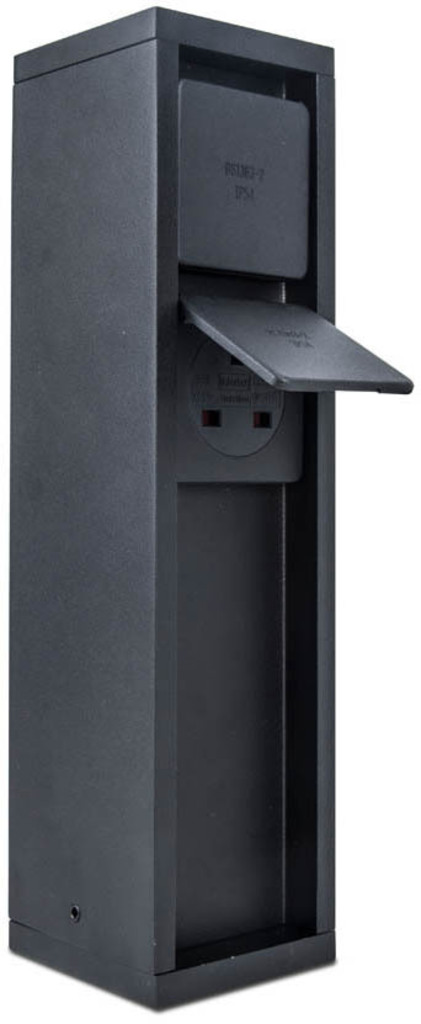 Disse mørkegrå udendørs strømforsyningsstik i trykstøbt aluminium er meget nem at installere og forsyne hele din have med energi, så du kan nyde dit udendørs rum. Leveres med sidejord eller pin earth version. Samlet strømforsyning op til 3500W. Lille pullert med én fatning med side jord.