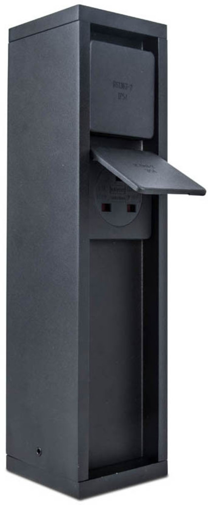 Denne udendørs stikkontakt i mørkegrå farve med jordstikprop på siden, fremstillet i støbejernsaluminium, er meget nem at installere og forsyner din hele have med energi, så du kan nyde dit udendørs rum. Samlet strømforsyning op til 3500W.