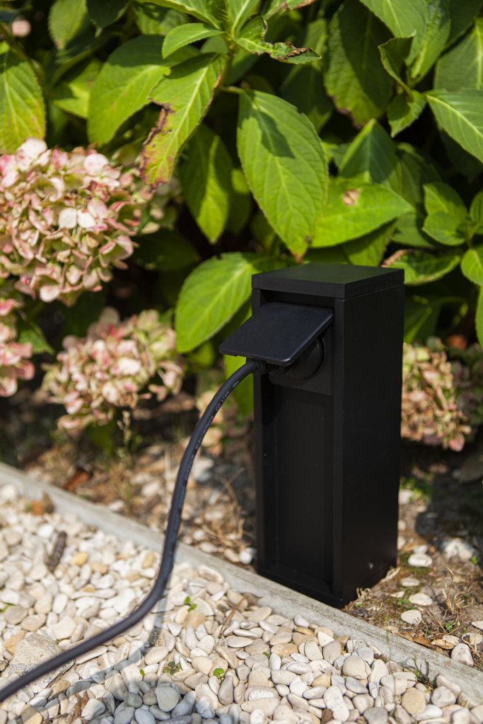 Denne udendørs stikkontakt i mørkegrå farve med jordstikprop på siden, lavet af støbejernsaluminium, er meget nem at installere og forsyner hele din have med energi, så du kan nyde dit udendørs rum. Samlet strømforsyning op til 3500W.