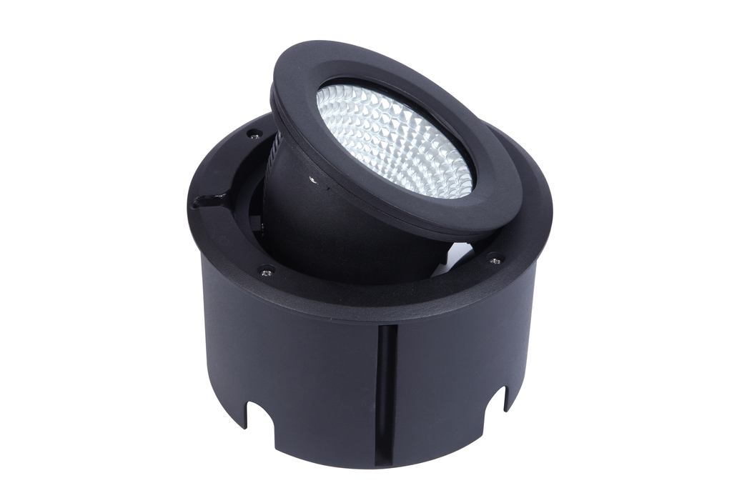 Kraftig og robust indbygget LED-jordspot. Denne spot kan hæves til en vinkel på 40°. Fremhæv ornamentik og karaktertræk i din have med en imponerende lysvirkning.
