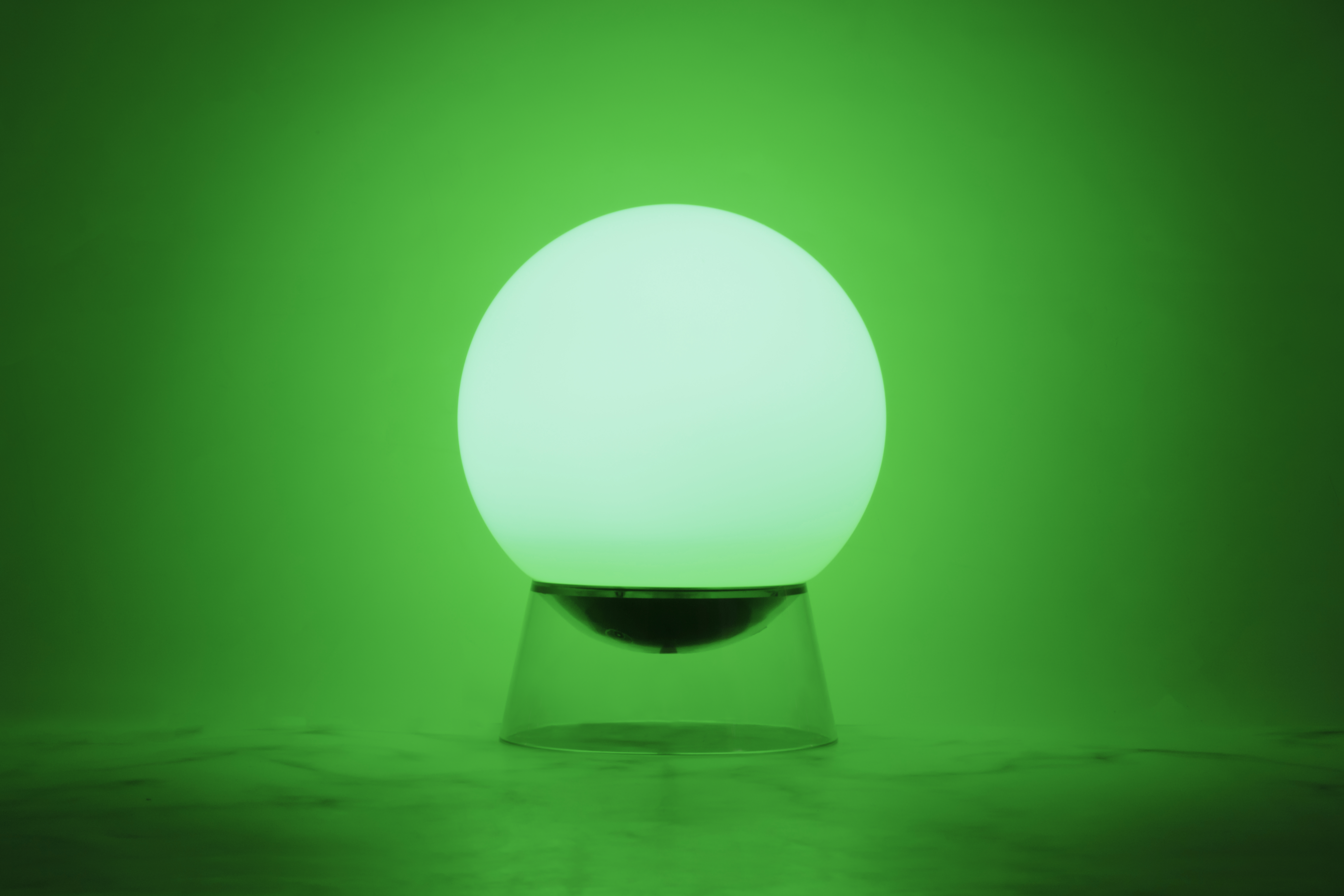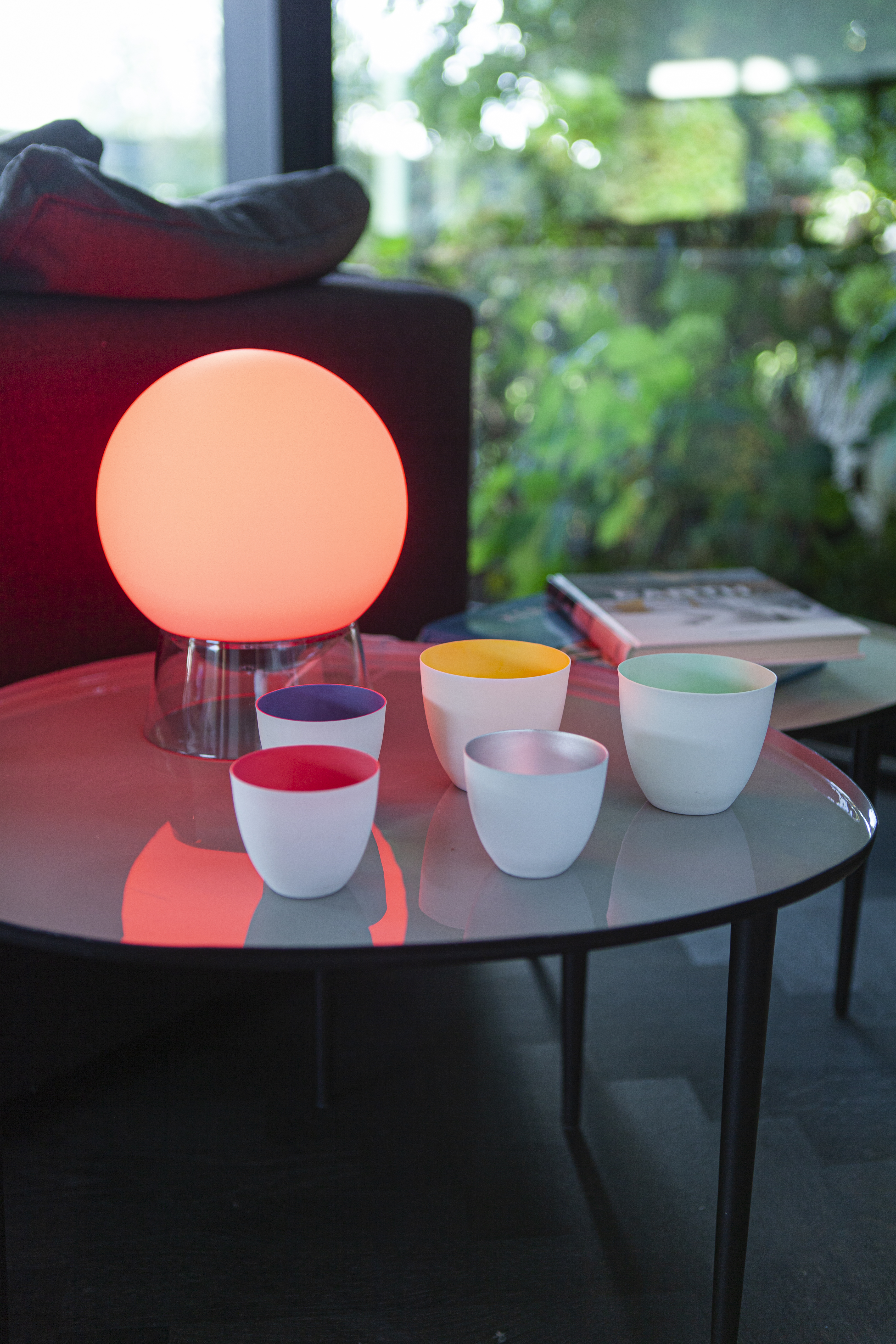Den satinerede glaskugle danner lampeskærmen til GLOBE bordlampen og sikrer en meget ensartet og blændfri lysfordeling på alle sider. RGB LED'er er indbygget i kuglen, som kan lyse op i 16 millioner farvetoner samt hvidt lys. Bordlampen er perfekt til din sidekommode eller skab og bidrager til atmosfæren med sit dekorative udseende. Trådløs betjening med separat tilgængelig fjernbetjening eller via Bluetooth-appen.