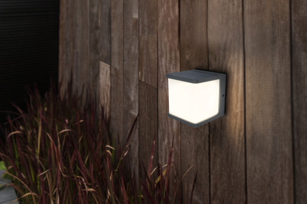Solar LED-væglampen DOBLO udvinder sin energi fra solen og genererer derfor ingen el-omkostninger. Det elegante design udstråler kraftige stråler af hvidt lys, der oplyser væggen. En ekstra funktion ved denne nye design er lysdæmpningen.