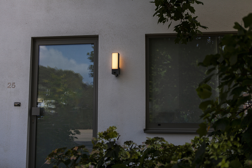 Udvidelsen af den designprisvindende CUBA-serie inkluderer dette smarte lys til sikkerhedskamera, der holder øje med dit hjem. Det har et integreret kamera, højttaler, mikrofon og bevægelsessensor, som alt sammen kan styres fra én app. Der er flere orienteringsmuligheder for lyshovedet, kameraet og bevægelsessensoren.
