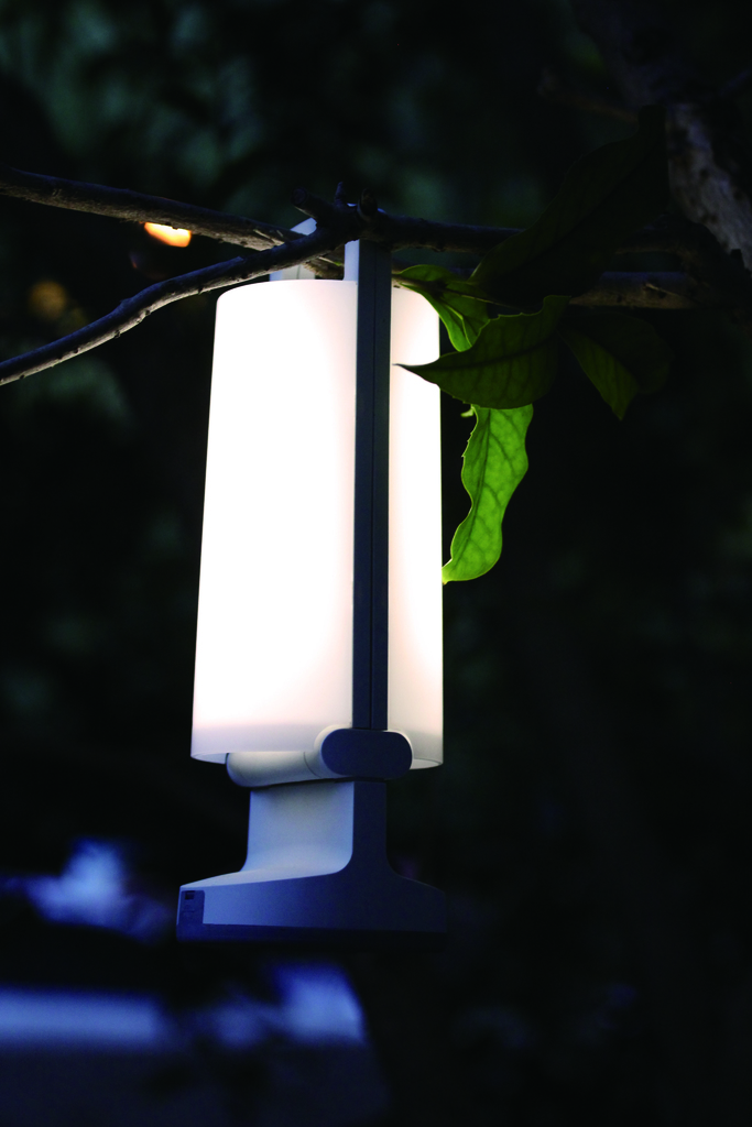 I den 'åbne' position vil denne bærbare solcellelampe akkumulere tilstrækkelig solenergi i løbet af dagen eller alternativt blive opladet gennem en indbygget USB-forbindelse med medfølgende kabel. I den lukkede position giver den indbydende lys, når det er mørkt. Leveres med 3-trins dæmper.