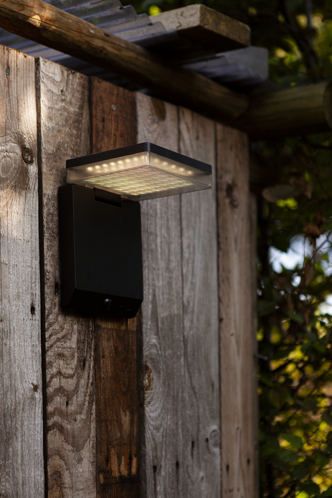 Med sit strømlinede design er MOZE udendørs solcelle vægarmatur ikke kun funktionelt, men også en fryd for øjet - både om dagen og om aftenen. Den indbyggede bevægelsessensor sikrer dig et indbydende lys. De integrerede LED'er gør den ideel til at oplyse en sti, men også til at skabe den rette stemning på din terrasse.