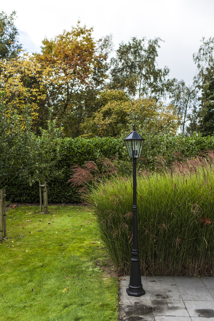 Klassisk 6-sidet lygte drevet af solenergi. Det næsten usynlige solpanel på lanternens tag har stor kapacitet, hvilket resulterer i lang autonomi på mere end 10 timer om natten. Leveres med 3 retrofit filamentpærer, der skaber et varmt og blødt lys. Stolpen af støbt aluminium kan monteres på en befæstet overflade takket være den medfølgende metalmonteringsbeslag. Til uforskårne overflader kan du bruge den særlige spyd, som fås som tilbehør.