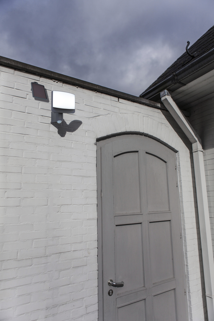 Denne SUNSHINE væglampe tilbyder en komplet sikkerhedsbelysning uden behov for ledninger til elnettet. Det separate justerbare solcellepanel med sin 5 meter lange kabel kan placeres på det optimale sted for at fange sollys hele dagen. Leveres med en justerbar PIR-bevægelsessensor (tid og afstand). Den bevægelige spotlampehoved giver en meget kraftig lysstråle på 800 lumen.