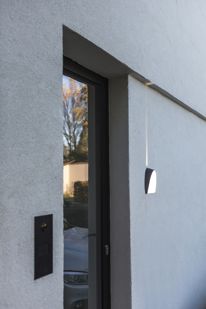 Væglampe med en optimal lyskombination. Den smalle lysstråle har en visuelt slående effekt og den forreste diffusor udstråler et homogent varmt hvidt LED-lys uden skygger. Ideel ledsager ved siden af din hoveddør.