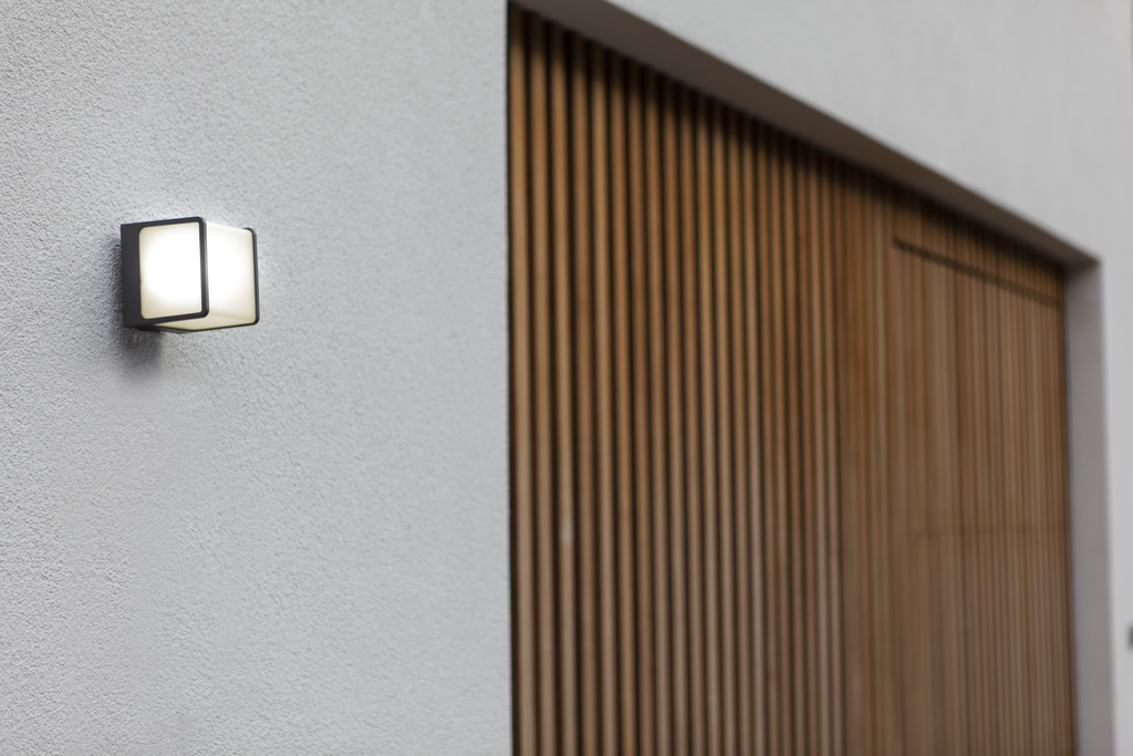 Denne LED-væglampe i antracitgrå sidder i en kubik holder lavet af slidstærkt trykstøbt aluminium. De elegant design fanger øjet og udstråler kraftfuldt stråler af varmt hvidt lys, der oplyser væggen.