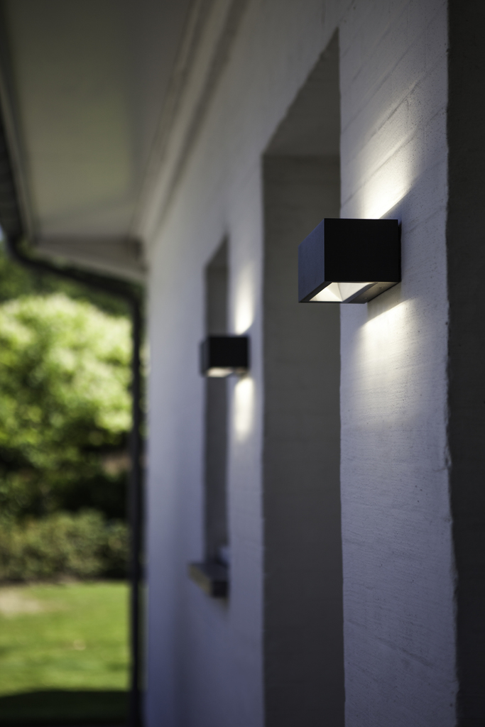 Den mellemstore version er meget praktisk for en montering på større ydervæg eller indgange. Takket være lysudbyttet på 1230 lumen lyset stråle vil dække hele overfladen i to retninger. Fås i varm hvid (3000K) og i dagslys (4000K) udførelse.