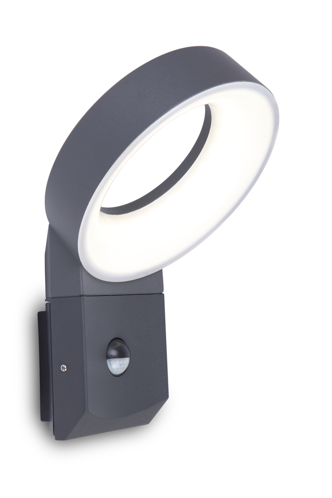 Elegant kombination af antracitgrå aluminiumsstruktur og opalhvid polycarbonat-diffuser. Den lille væglampe giver et stærkt diffust lys og fungerer som et designstatement i din have. Den justerbare bevægelsessensor er perfekt integreret i lampens base.