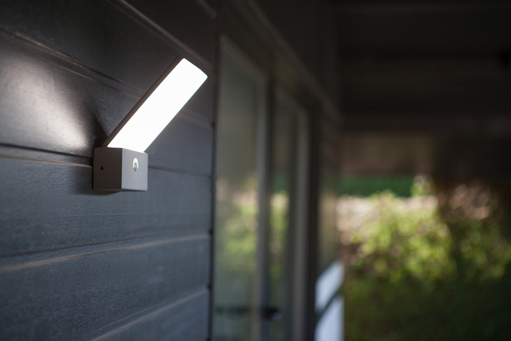 En elegant udendørs LED-væg- og pullertlampe med en ultraflad, rammeløs afskærmning. Leveres med en integreret justerbar farvekontakt. Du kan indstille lysfarven fra varm hvid til kølig hvid på en meget praktisk måde.