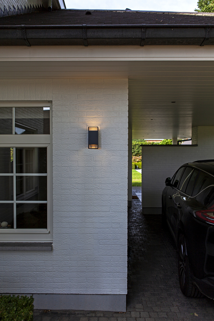 RIDGE er en mørkegrå væglampe med Up & Down lys lavet af aluminium. Lampen er afsluttet med opal diffusorer som giver en flot spredning af lys. Det moderne design er smagfuld tilføjelse til din have eller hjem. Denne lampe har to GU10 fittings.
