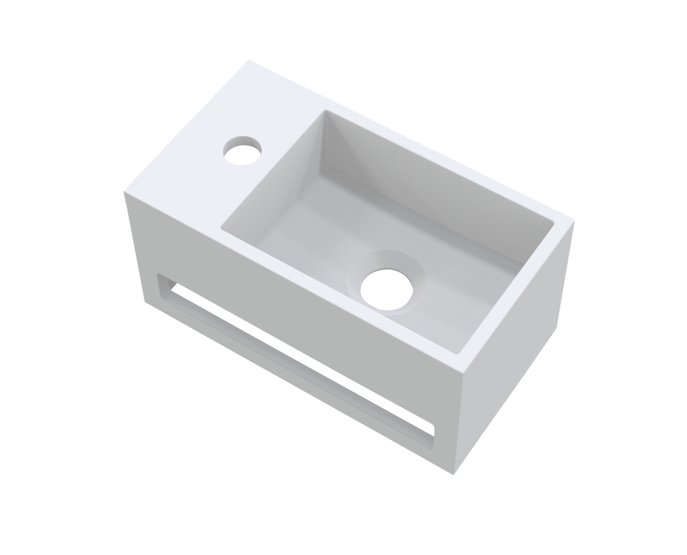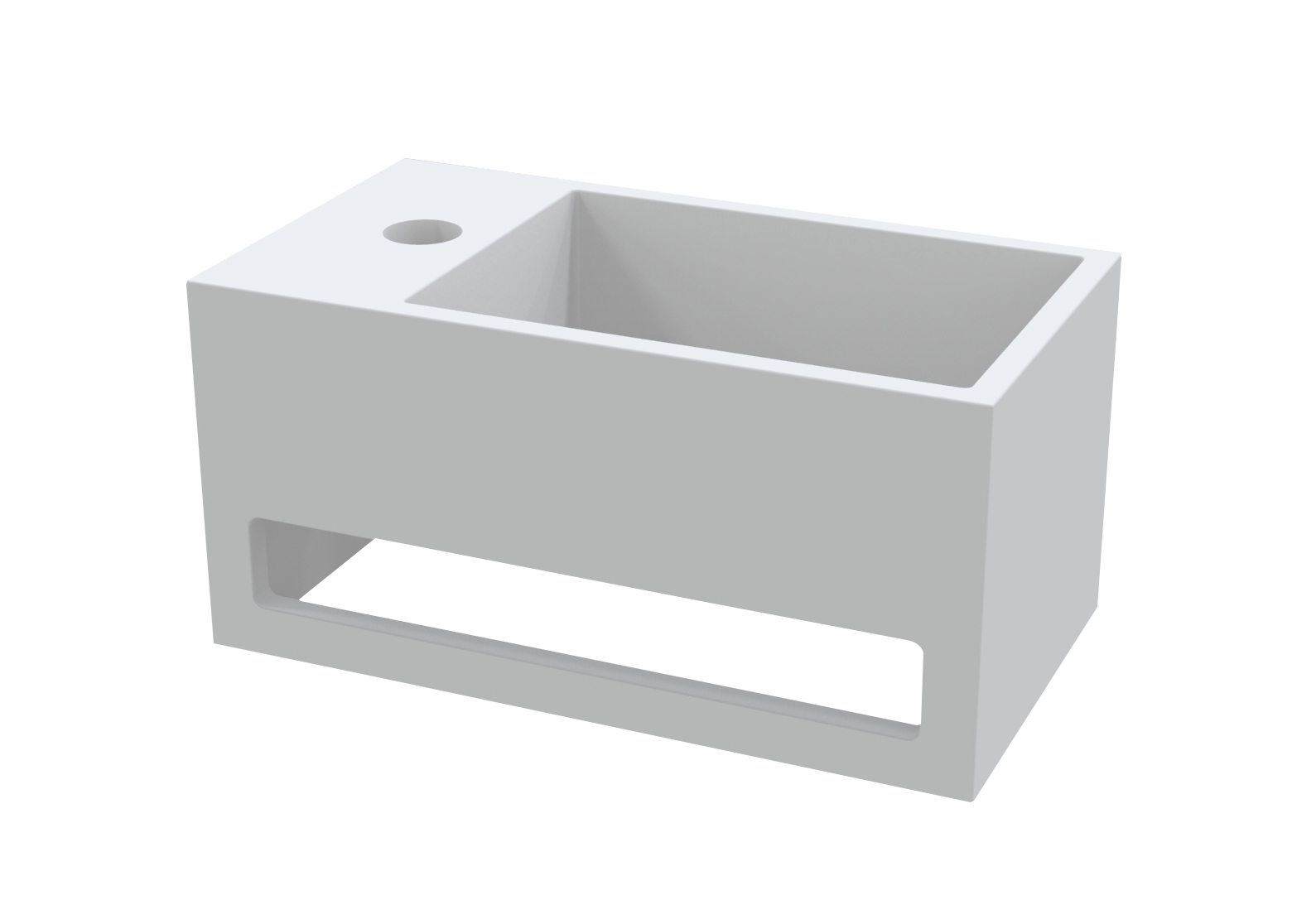 Mona håndvasken, med håndklædeholder er en stilfuld og funktionel løsning, der tilfører et elegant og moderne udtryk til toiletområdet. Toiletvasken er fremstillet i solid surface med en mat hvid finish, som sikrer et eksklusivt udseende og lang holdbarhed.