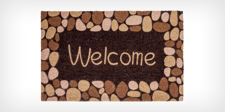 Udstyr dit hjem med en dørmåtte, der holder dit hjem rent. Dørmåtten fjerner både fint og groft snavs fra fodtøj, inden du og dine gæster træder ind i dit hjem. Denne brune dørmåtte har en rektangulær form, og den er udsmykket med teksten ”WELCOME”. Dørmåtten er produceret af bast fra kokosnødder, og den kan rengøres ved forsigtigt at bankes, børstes eller støvsuges.