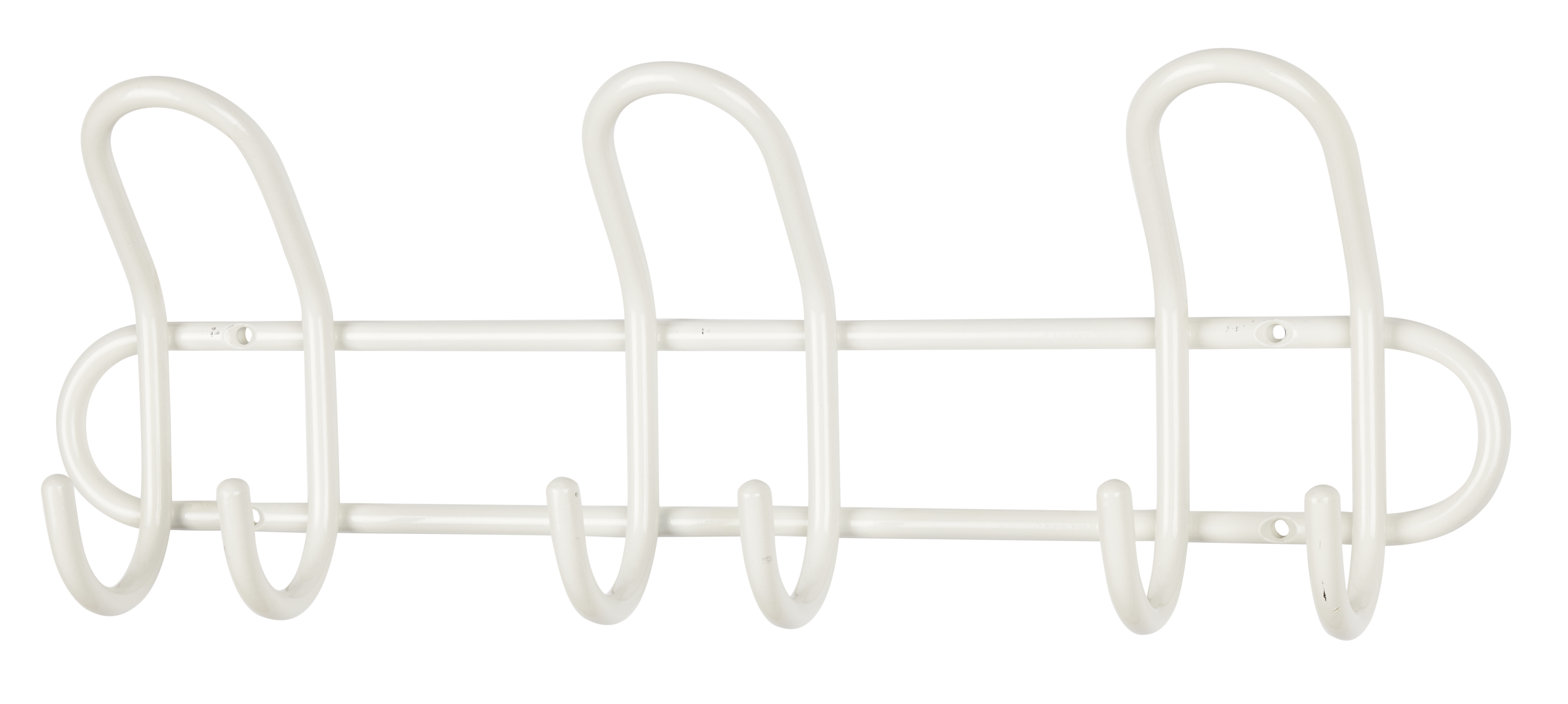 Denne hvide knagerække er universal og kan bruges i hele hjemmet efter behov. Knagerækken er klassisk, og den er kendetegnet ved dens enkelthed og funktionalitet. De 3 dobbeltkroge udgør tilsammen 6 knager til ophæng af overtøj, tasker og andet tilbehør. Det simple design sikrer god plads til opbevaring, og derudover har knagerækken en stærk bæreevne. Knagerækken er nem at installere, da den monteres med de inkluderede skruer og rawplugs.