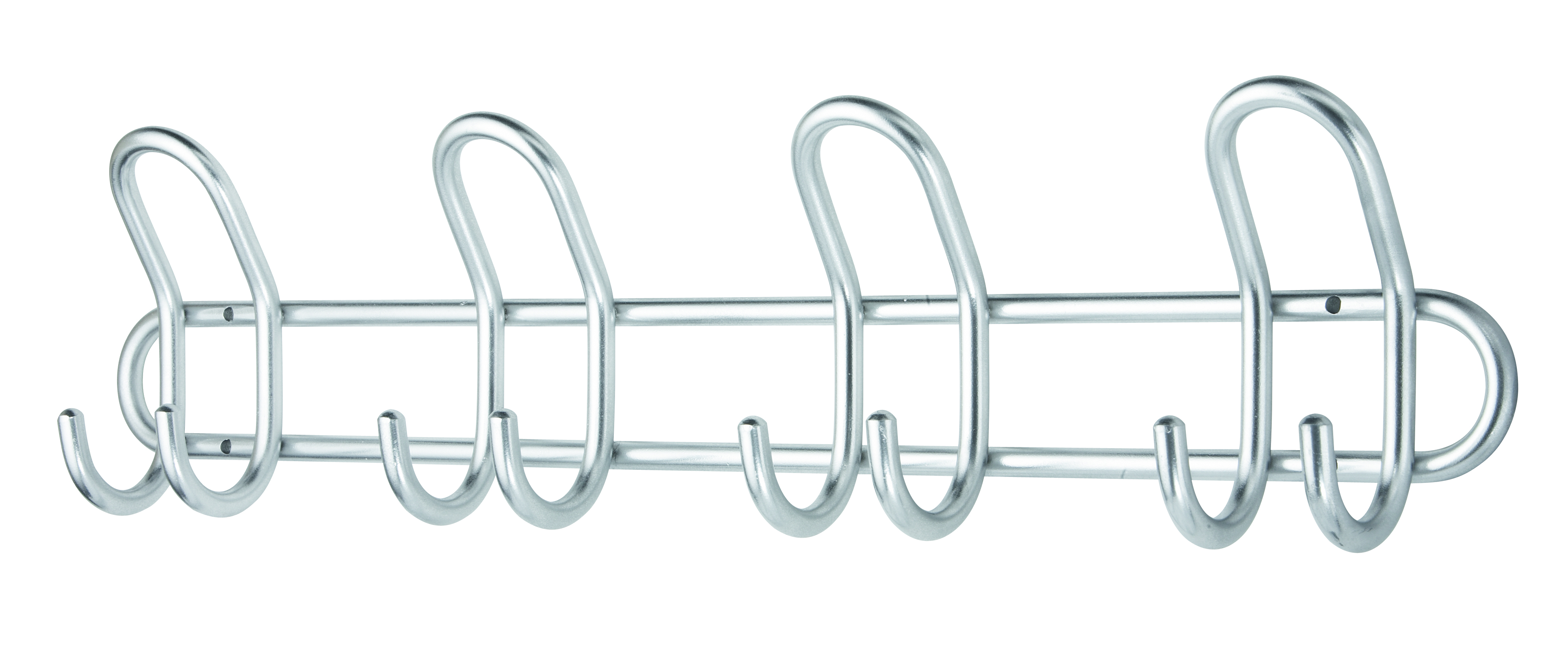 Denne kromfarvede knagerække er universal og kan bruges i hele hjemmet efter behov. Knagerækken er klassisk, og den er kendetegnet ved dens enkelthed og funktionalitet. De 4 dobbeltknager udgør tilsammen 8 kroge til ophæng af overtøj, tasker og andet tilbehør. Det simple design sikrer god plads til opbevaring, og derudover har knagerækken en stærk bæreevne. Knagerækken er nem at installere, da den monteres med de inkluderede skruer og rawplugs.