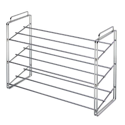 Deco skoreol er en simpel og funktionel skoreol i et stilrent og tidsløst design af kromfarvet stål. Det blanke skostativ er udstyret med tre hylder. Stativet er ideelt til opbevaring af fodtøj i entréen, hvor det holder orden på sko og støvler. Skostativet leveres samlet, så det er klar til brug.