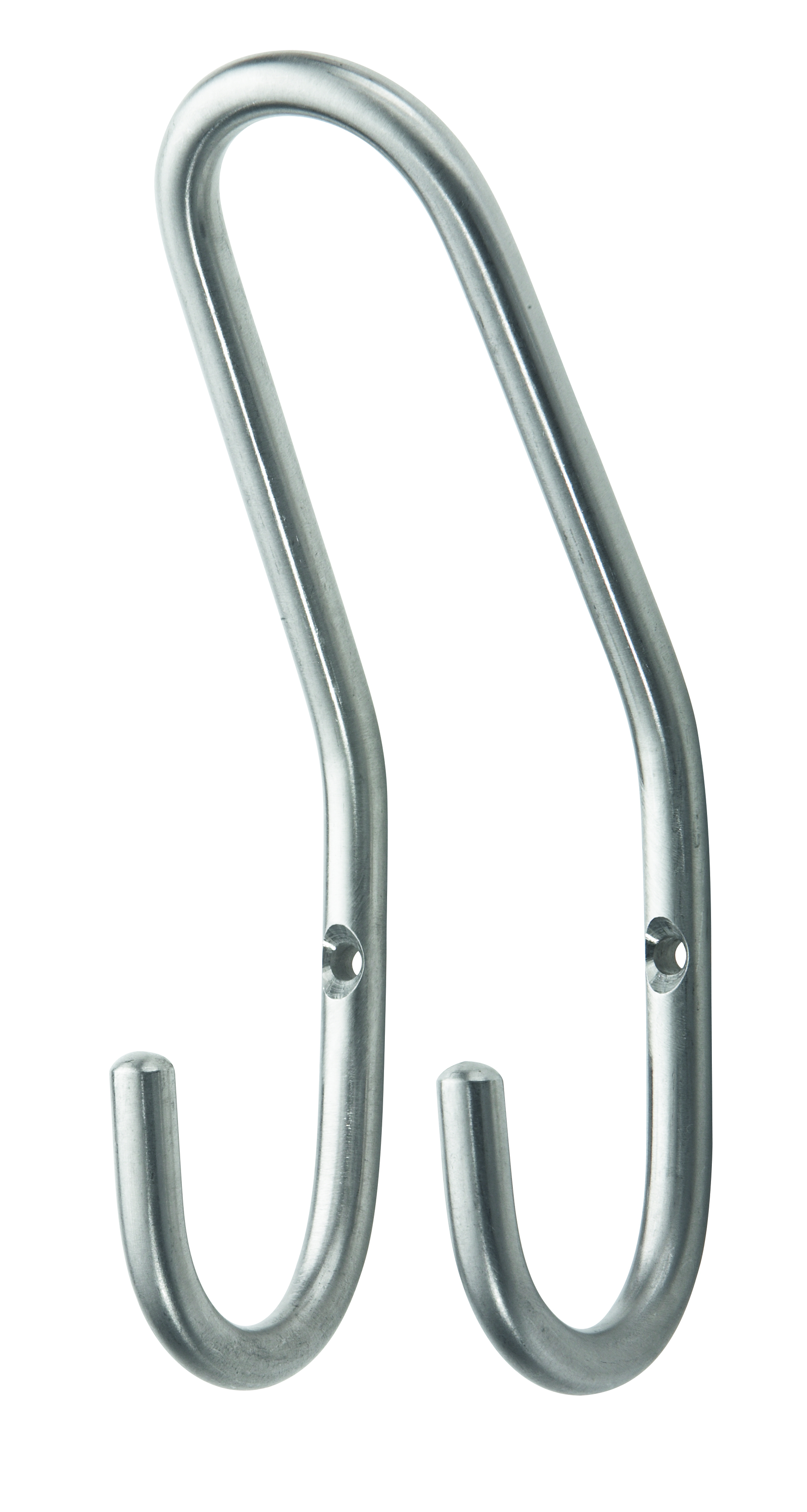 Denne klassiske knage passer ind i ethvert hjem med sit elegante og simple design. Den store knage er designet som en dobbeltkrog, således at den på samme tid øger kapaciteten og sparer plads. På knagen kan overtøj, tasker og tilbehør opbevares. Knagen er lavet af rustfrit stål, således at den er slidstærk og kan holde til hverdagens brug og slid. Den er nem at installere, da den monteres med de inkluderede skruer og rawplugs.
