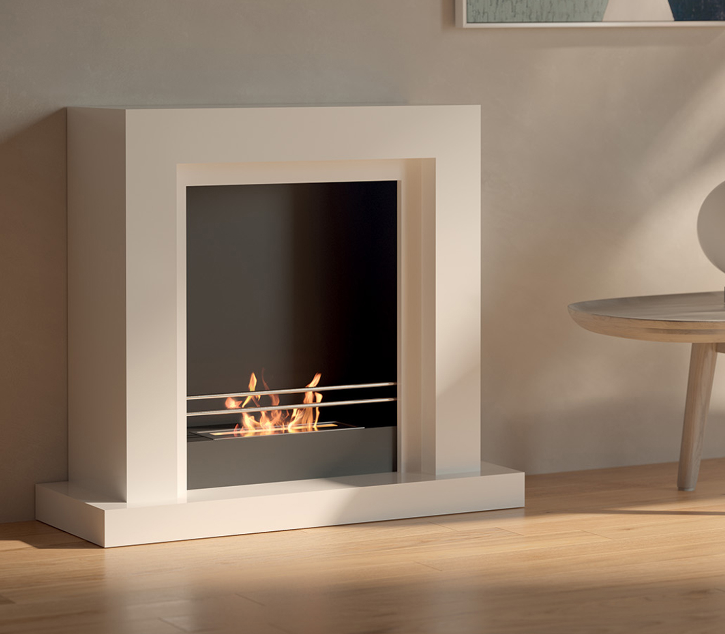 Biopejsen skaber en varm og behagelig stemning i rummet. Camogli biopejs er en simpel og elegant biopejs med sit enkle design i hvidt trælook.