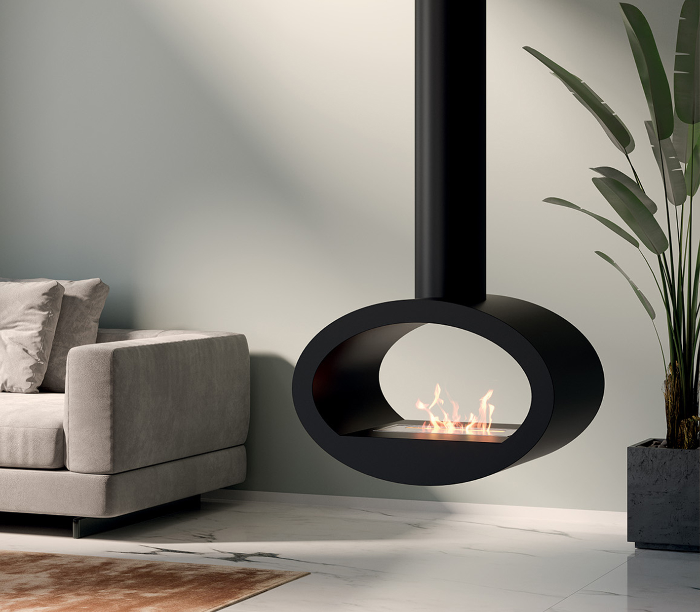 Cervinia er en elegant lofthængt biopejs, der tilfører rummet både varme og stemning, mens den fungerer som et stilet designelement i indretningen. Den unikke, svævende konstruktion giver et moderne og eksklusivt udtryk, der gør den til et naturligt blikfang i enhver bolig.