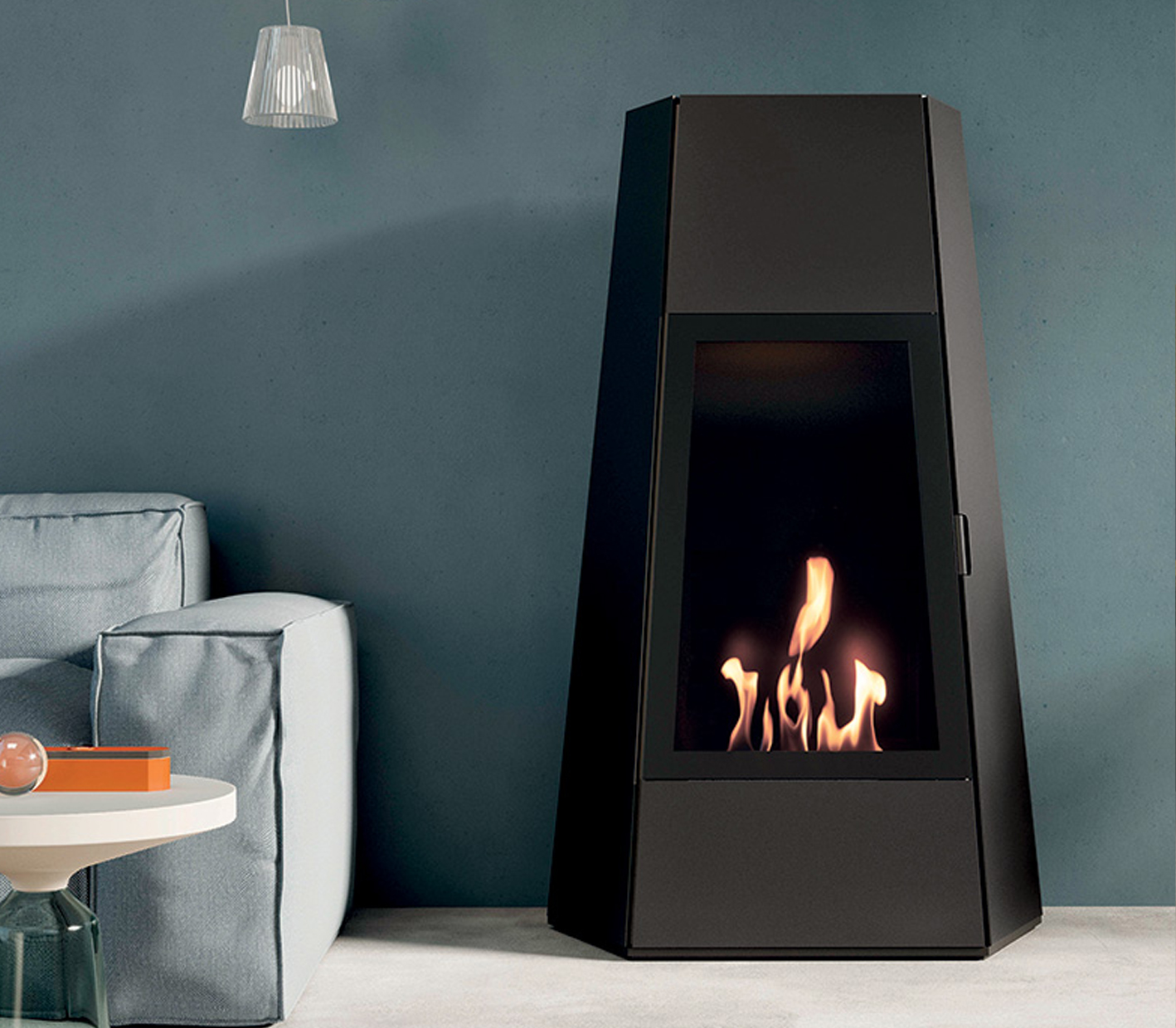 Den stilrene pejs er gulvstående, hvor den kan placeres frit i hjemmet efter ønske. Pejsen er udstyret med en lugtfri flamme, som ikke udskiller sod eller kondens.