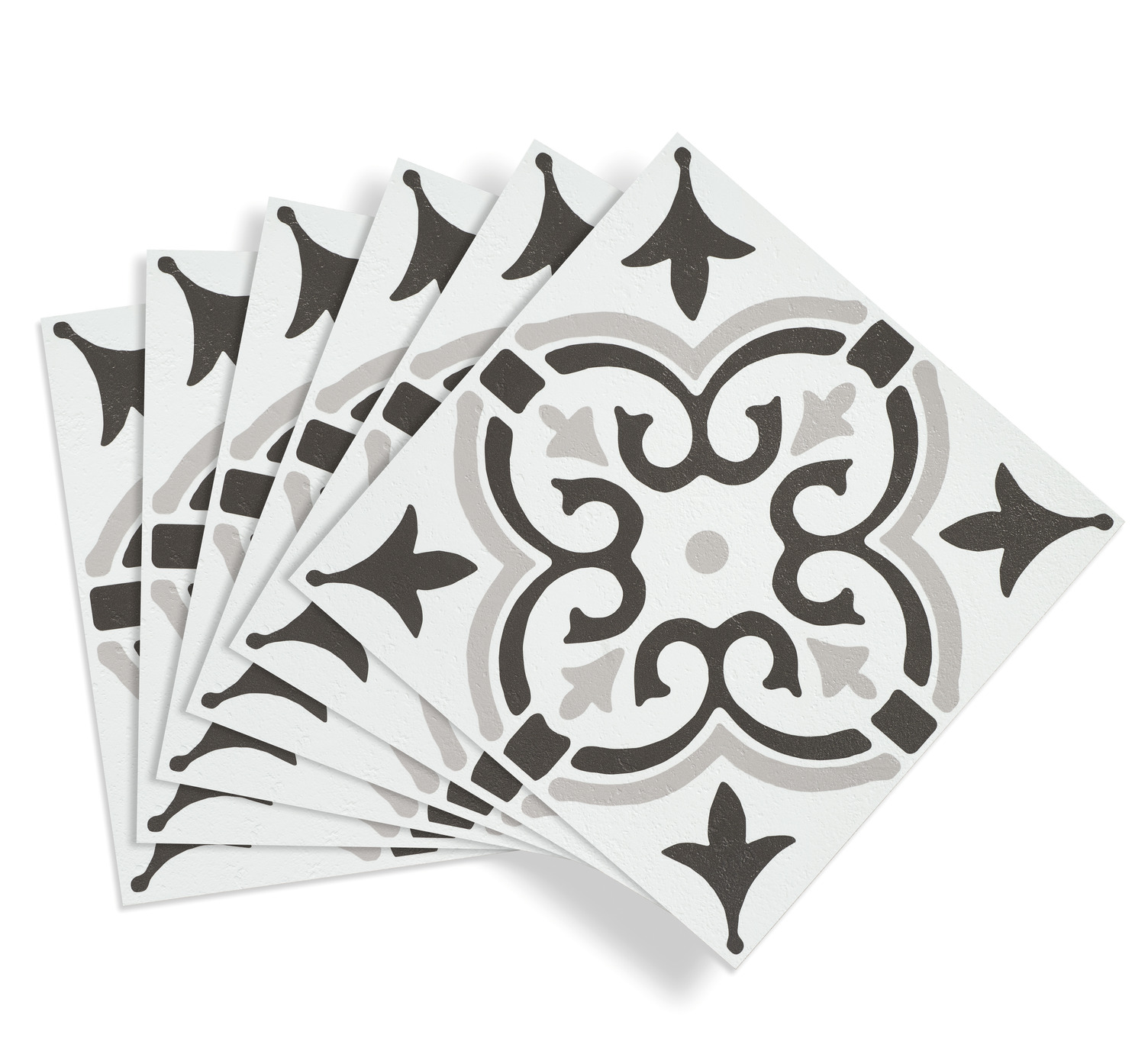 Denne pakke indeholder 11 vinylfliser. Hver flise måler 30,5 x 30,5 cm og har en selvklæbende bagside, der gør installationen til en leg. Én pakke dækker et område på 1,02 m².