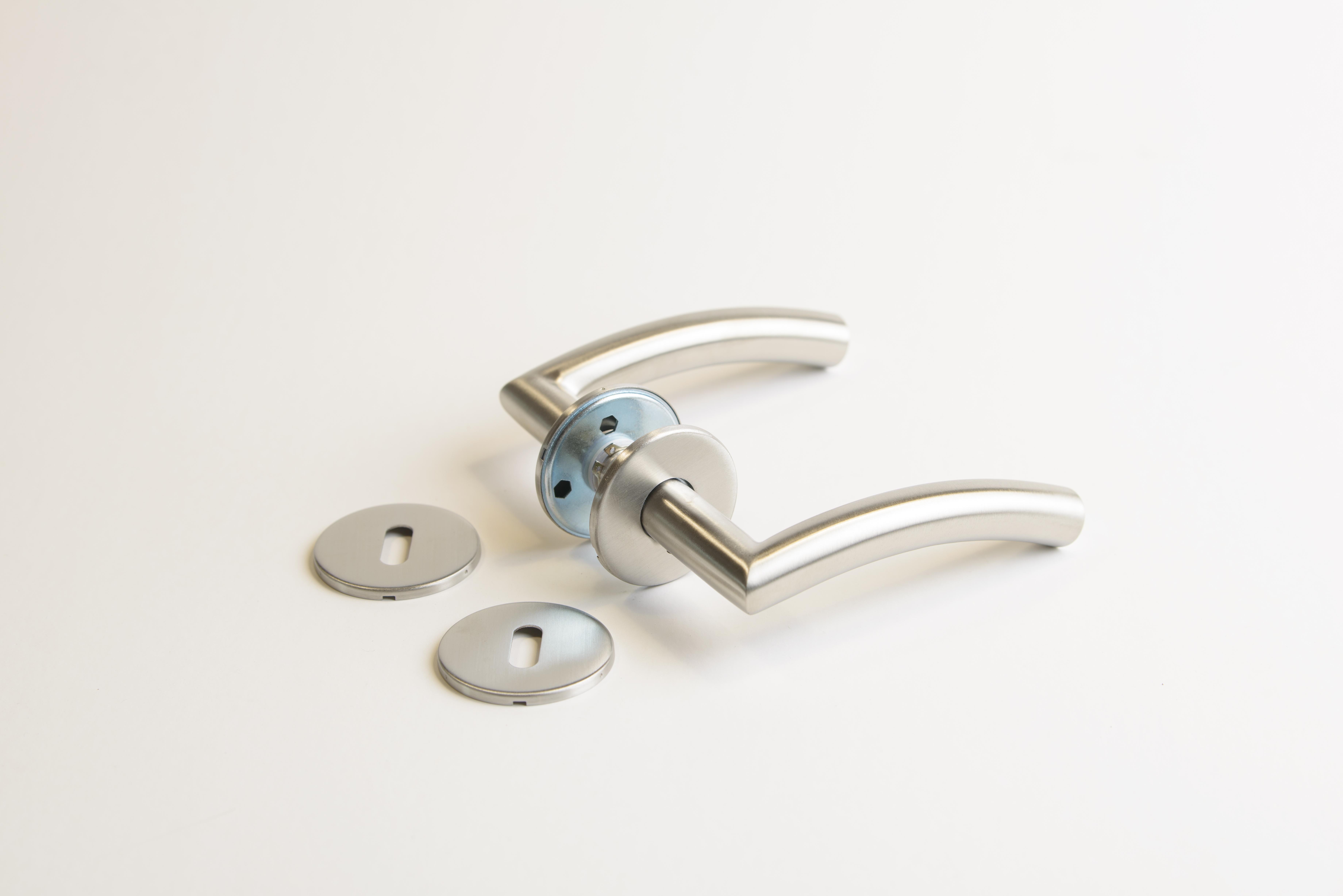 Det buede dørgreb har et rundt greb med en flad afslutning for enden. Grebet kan holde til hverdagens brug og slid, da det er produceret af rustfrit stål, som er et slidstærkt materiale. Det moderne greb har en lav detaljeringsgrad, der gør det anvendeligt i mange hjem.