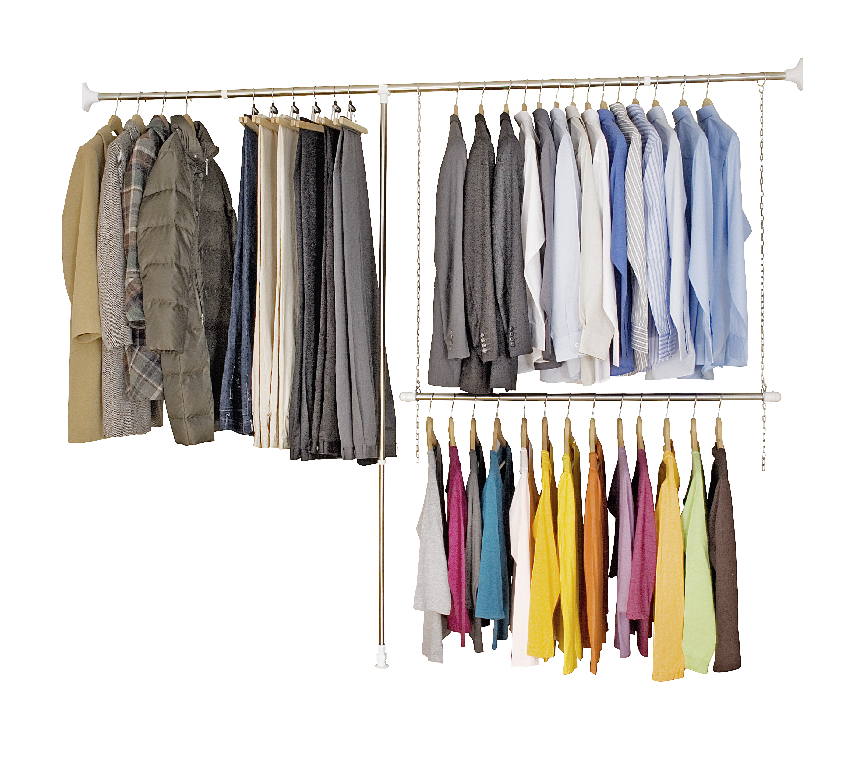 Den anden stang kan bruges fleksibelt med to justerbare kæder. Systemet kan installeres mellem to vægge eller direkte i et garderobeskab og har en bæreevne på op til 110 kg med støttebjælken.