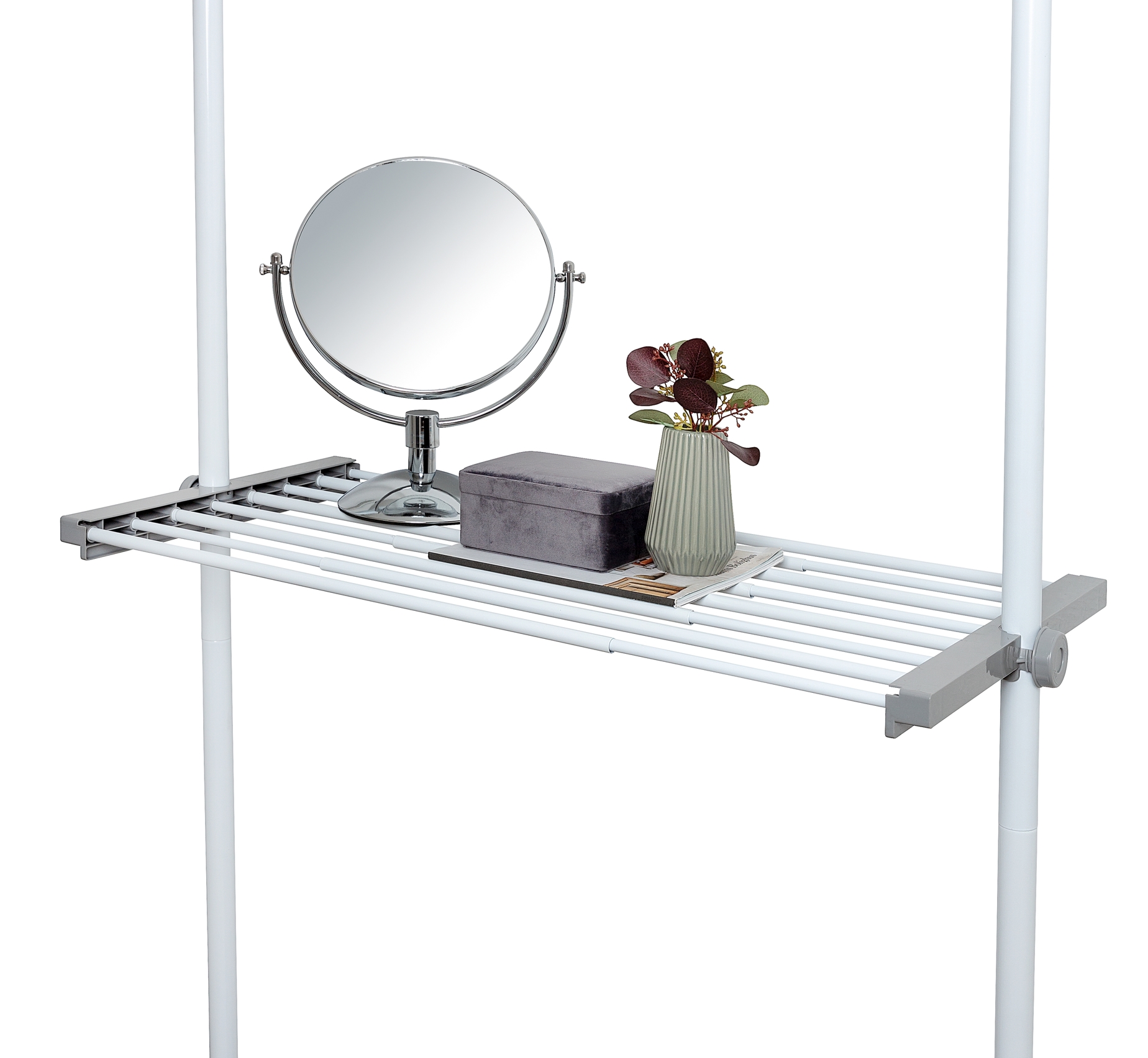 Denne praktiske justerbare hylde er designet til at passe perfekt ind i Wenko Herkules teleskopsystem. Med sit enkle design i grå og hvid passer den ind i de fleste boligindretninger og tilføjer et stilrent udtryk til dit rum.