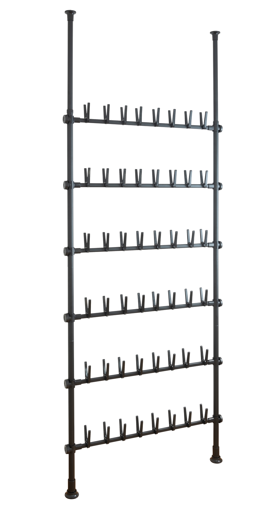 Skostativet har kapacitet til at rumme op til 48 par sko, hvilket gør det ideelt både for den, der har en stor skoamling, og for børnefamilier, der søger en praktisk opbevaringsløsning. De fleksible skoholdere kan bære alt fra stiletter til sneakers, så hele familien kan få glæde af systemet.