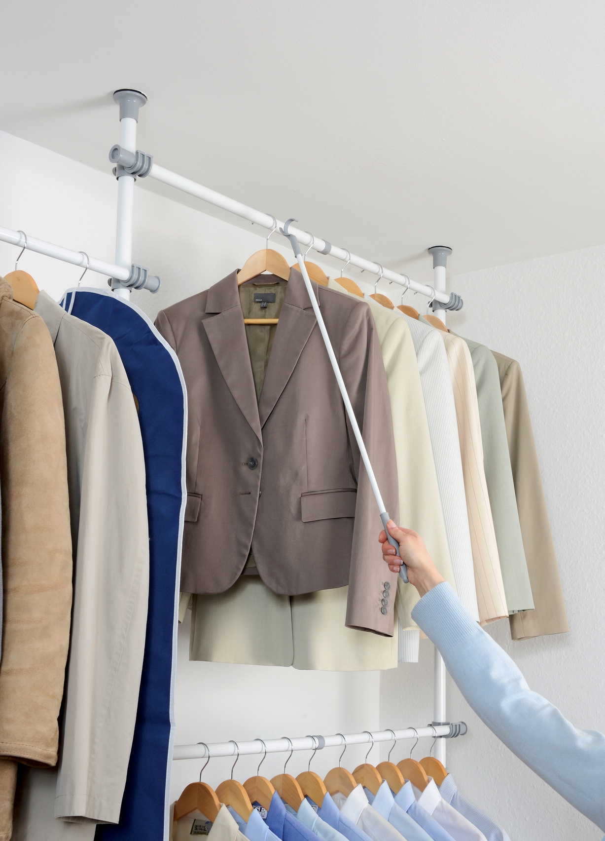 Med det fleksible teleskopsystem Herkules fra WENKO kan drømmen om en walk-in garderobe gå i opfyldelse i næsten alle rum. Denne praktiske ophængsløsning er en del af Herkules Mix & Match-serien, som giver dig mulighed for at udvide eller skabe din helt egen garderobeløsning. Med denne bøjlekrog kan dine yndlingsklæder nemt hænges op eller tages ned fra tøjstangen, også når de sidder højt. Den smarte ophængsstang er lavet af robust hvidt stål og kombineret med grå plastdele, der passer perfekt til resten af Herkules-serien.