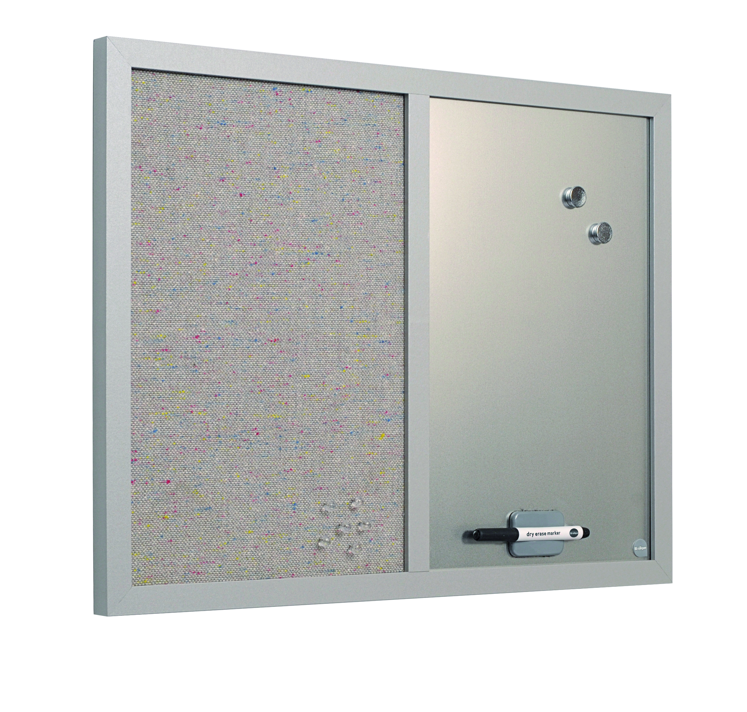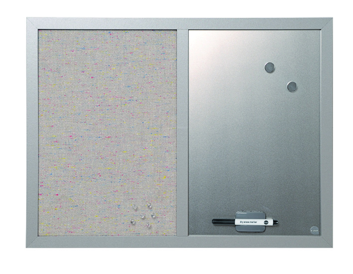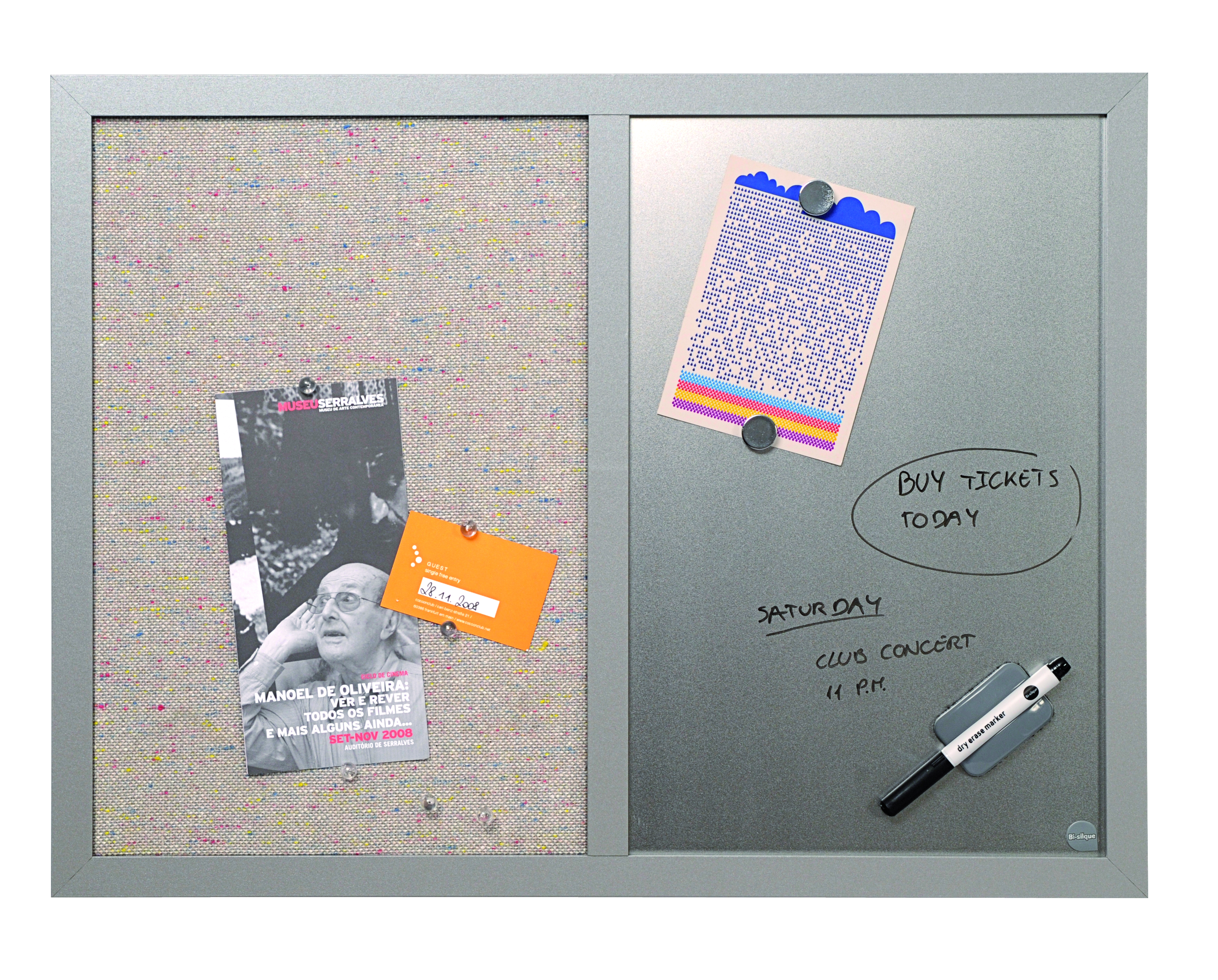 Millex kombitavle giver dig både en traditionel whiteboard-tavle og en praktisk opslagstavle i ét. Den ene side fungerer som en glat og effektiv overflade til at skrive med tusch, mens den anden side er ideel til at hænge noter, billeder eller andre vigtige dokumenter op med knappenåle, stifter eller magneter.