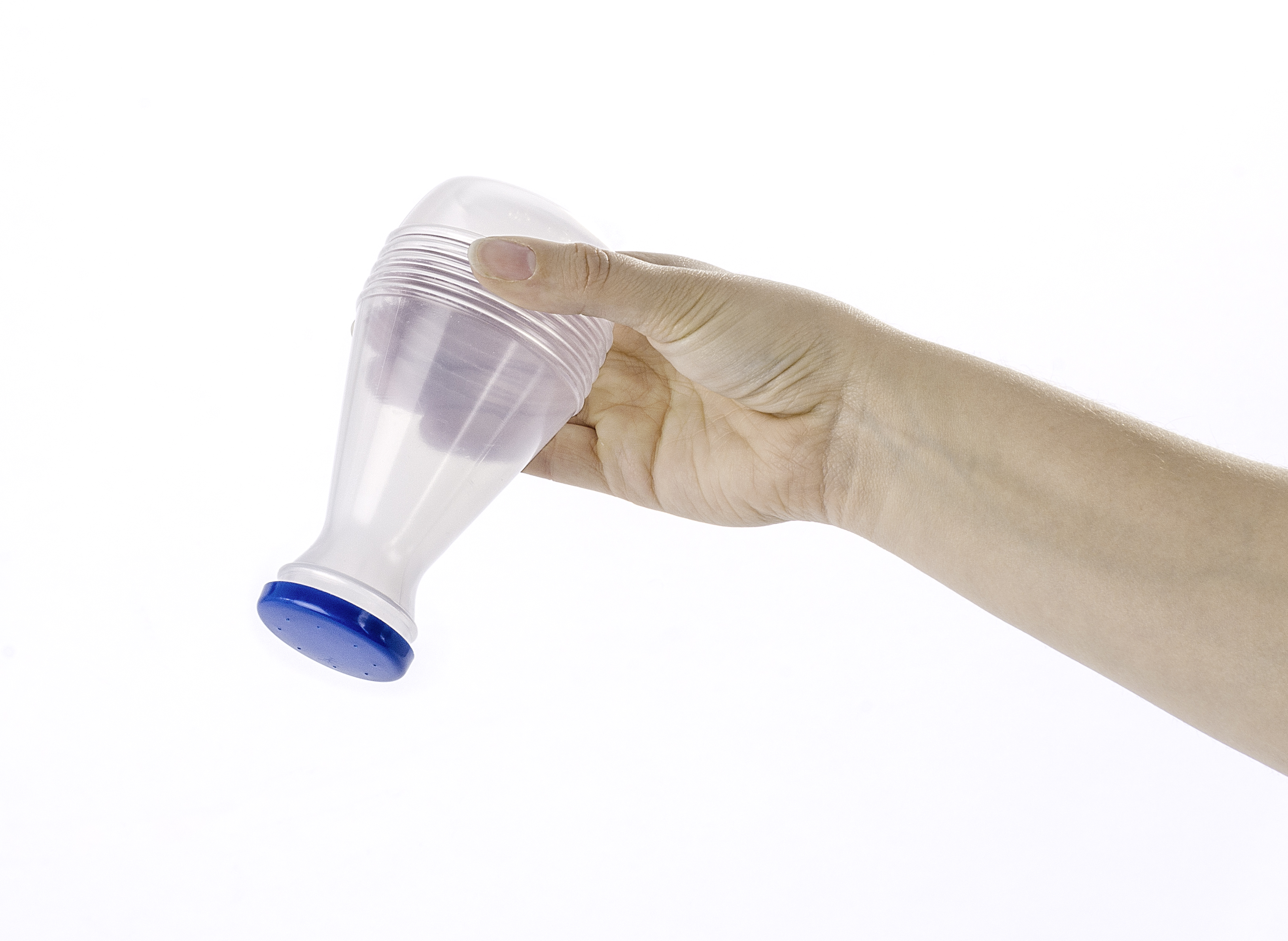 Ultrafine perforeringer i låget sikrer jævn strøelse af vasketøjet. Den har en klassisk form med et aftageligt blåt låg og en transparent beholder. Den er lavet af slidstærk plastik. Kapaciteten er 300 ml, og målene er 7 cm i diameter og 14 cm i højden.