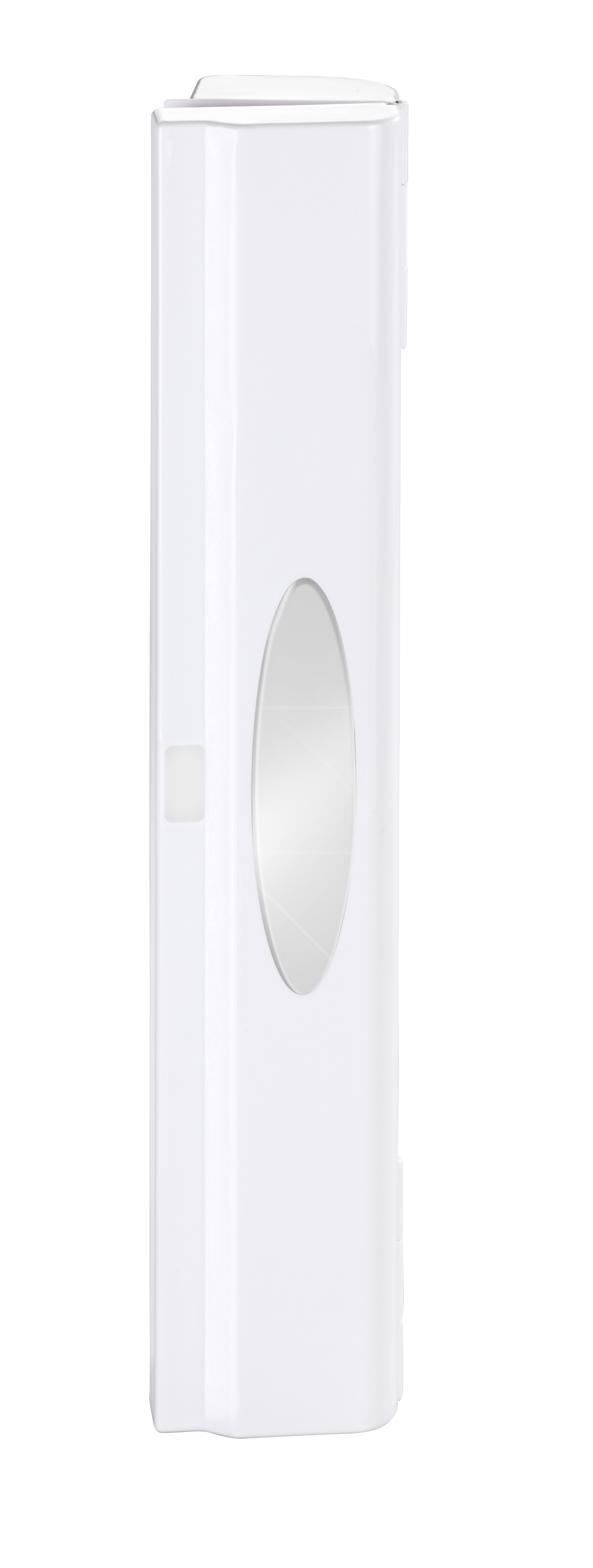 Holderen er designet i stilfuld hvid med et praktisk vindue, der giver overblik over indholdet. Målene er 38 cm i bredden, 5,2 cm i højden og 6,7 cm i dybden.